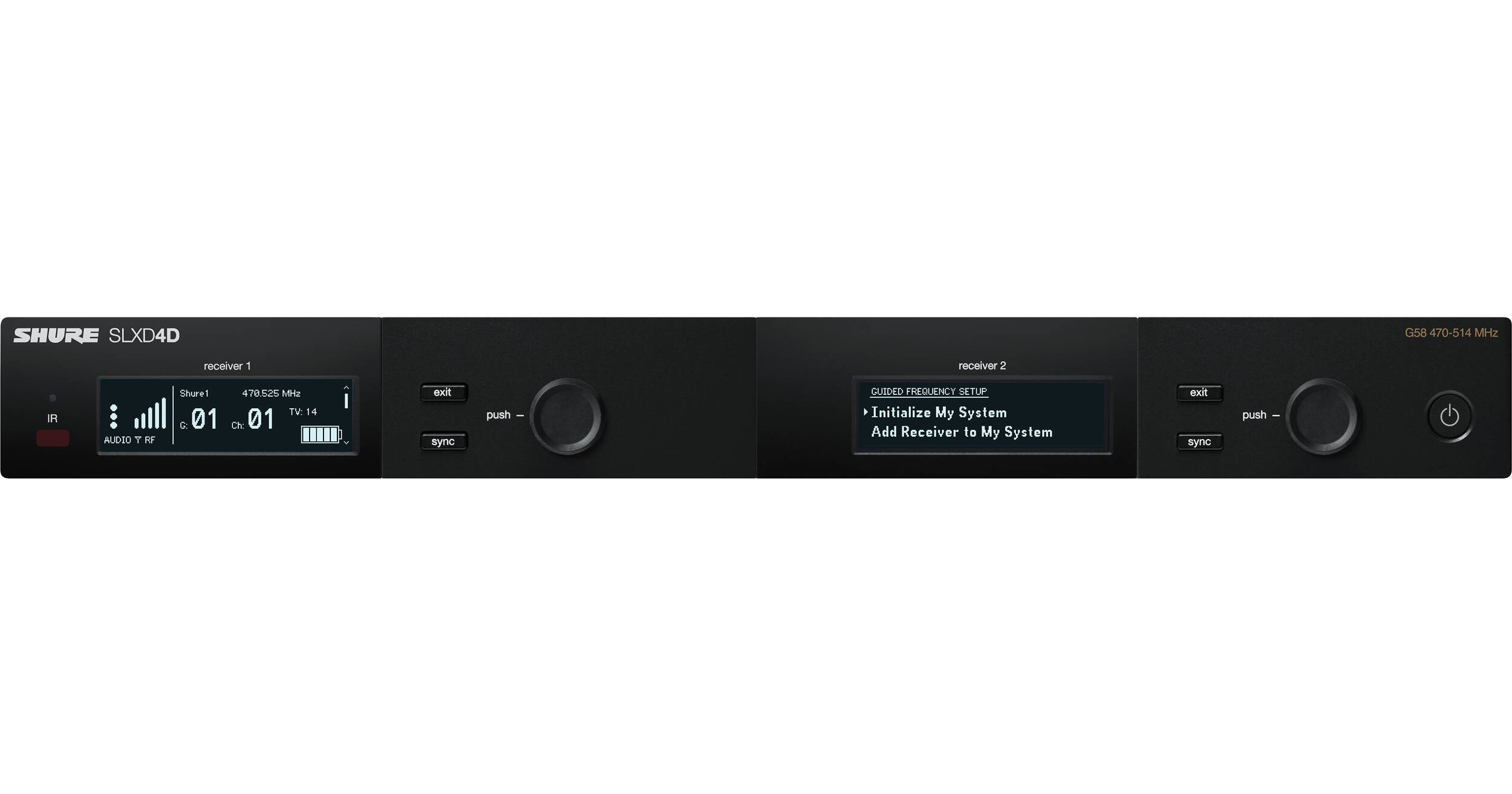 Shure SLXD4D=-G58 SLXD4D DIGITAL 19 DUAL RECEIVER WITH 19 RACK MOUNT KIT, INCLUDES TWO 1/4-WAVE AN