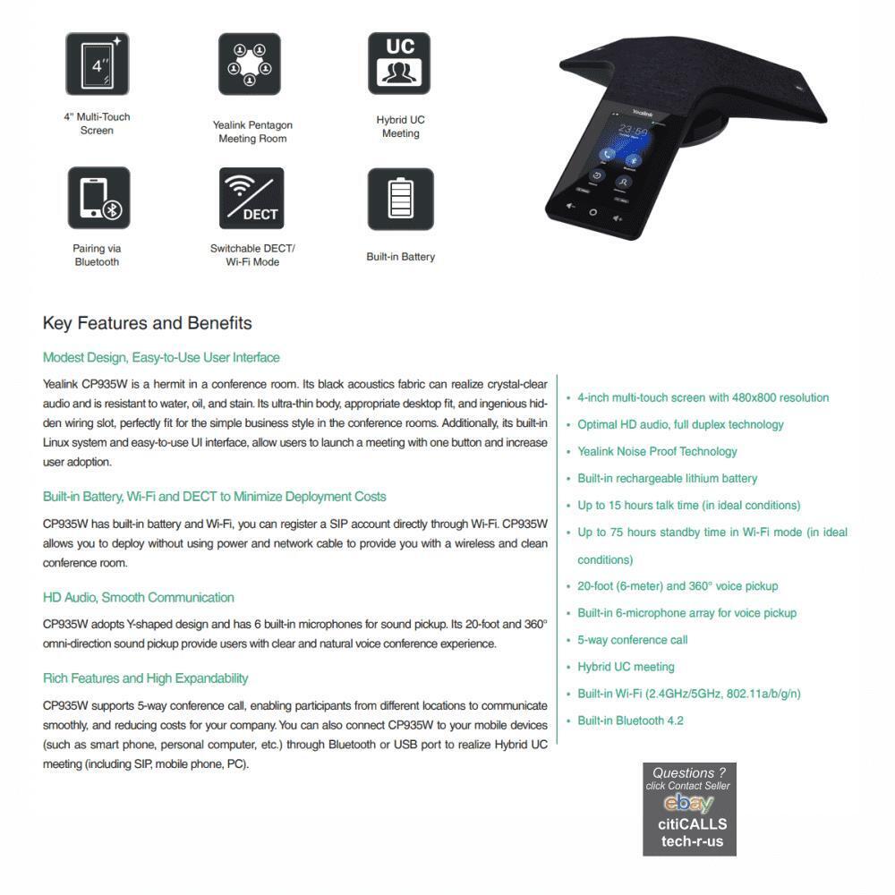 Yealink CP935W-BASE 1204613 4-INCH MULTI-TOUCH SCREEN WITH 480X800 RESOLUTION