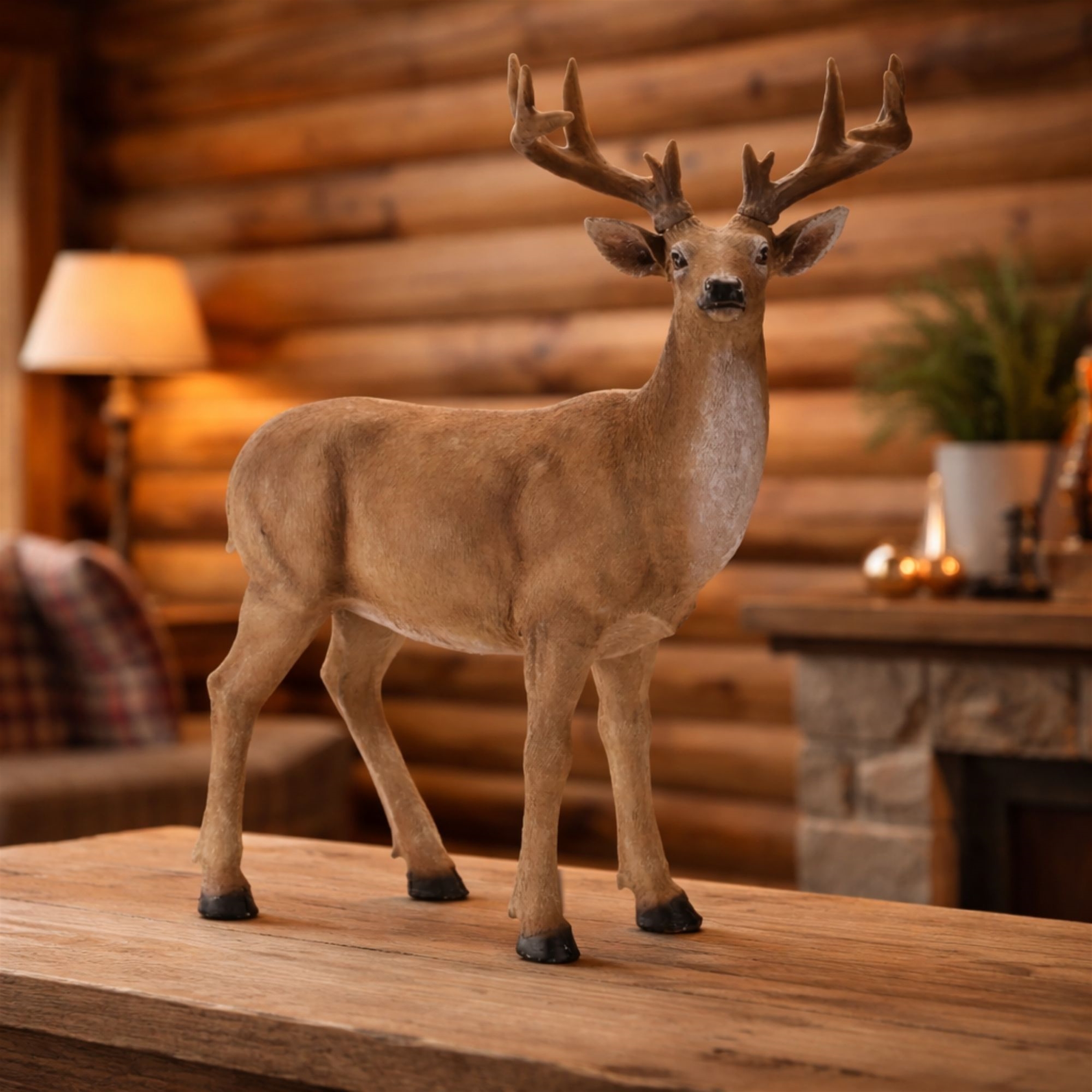 Create a breathtaking focal point in your seasonal d cor with this Large Standing Woodland Deer Figurine. Designed with a graceful stance and beautifully sculpted antlers, this statement piece captures the quiet majesty of a winter forest. Its natural coloring and realistic details make it perfect for elevating Christmas displays, enhancing a woodland-themed setting, or adding rustic elegance to entryways, mantels, and hearthside arrangements. Pair it with evergreen garlands, lanterns, and cozy textures to bring warmth, depth, and timeless charm to your holiday home d cor.