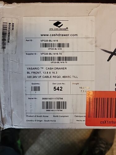 APG T320-BL1616 S100 DRAWER 16X16 BLK 24V 5BILL 5COIN TILL CABLE REQ