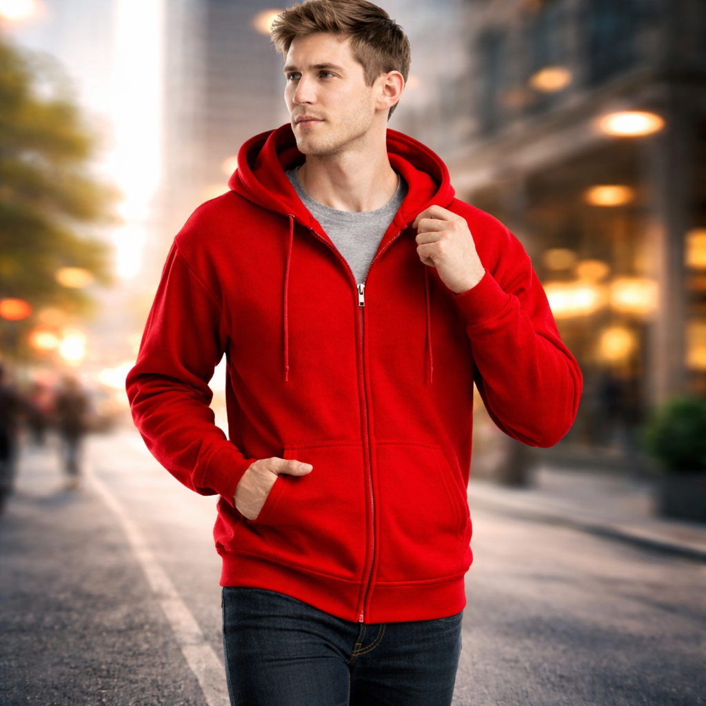 This men’s full-zip fleece hoodie is designed for everyday comfort and versatility. Soft, warm, and easy to layer, it works equally well for casual wear, light activity, travel, or lounging in cooler weather.