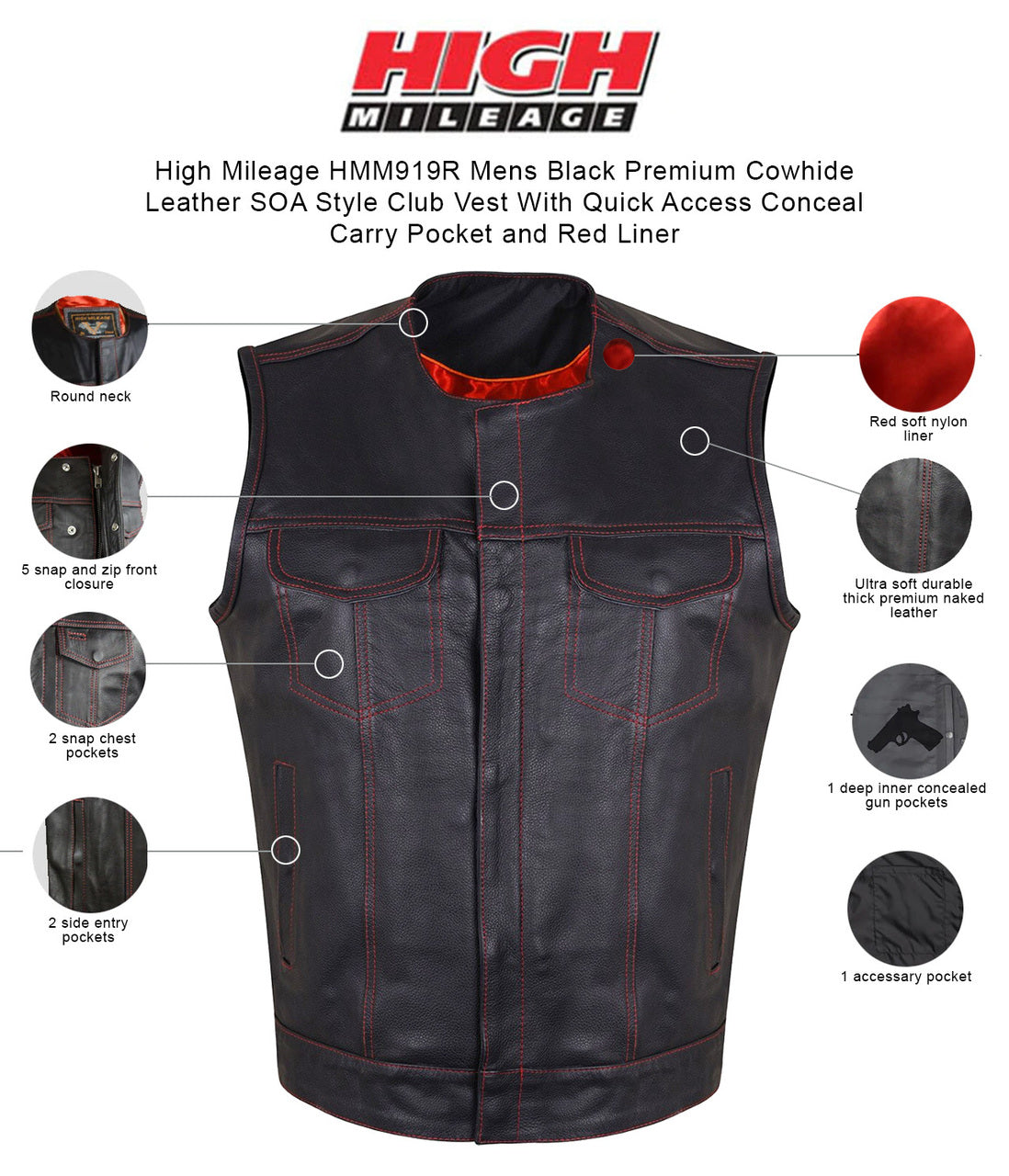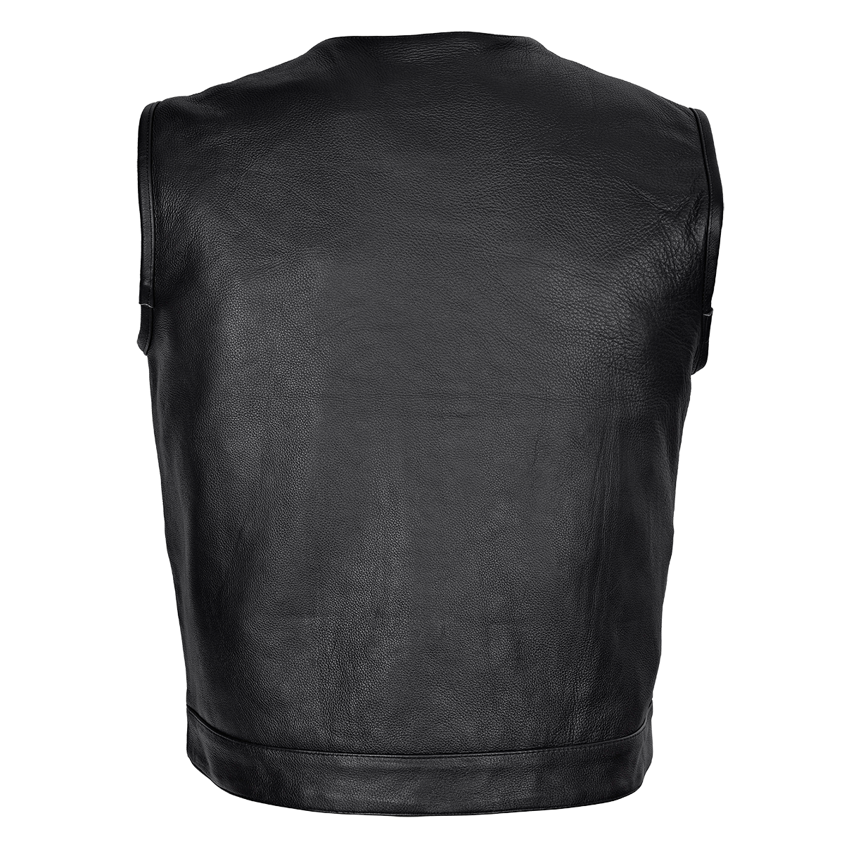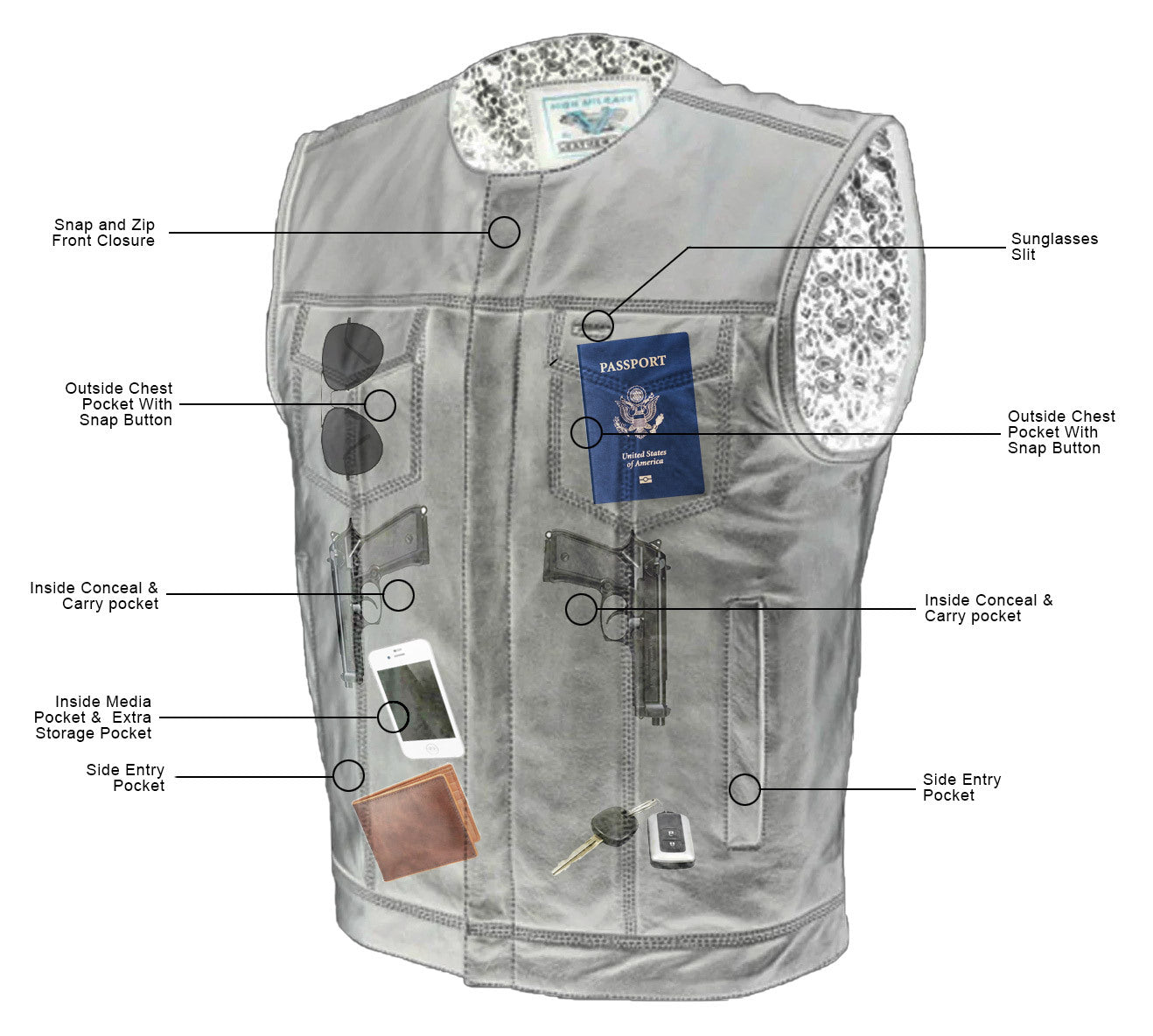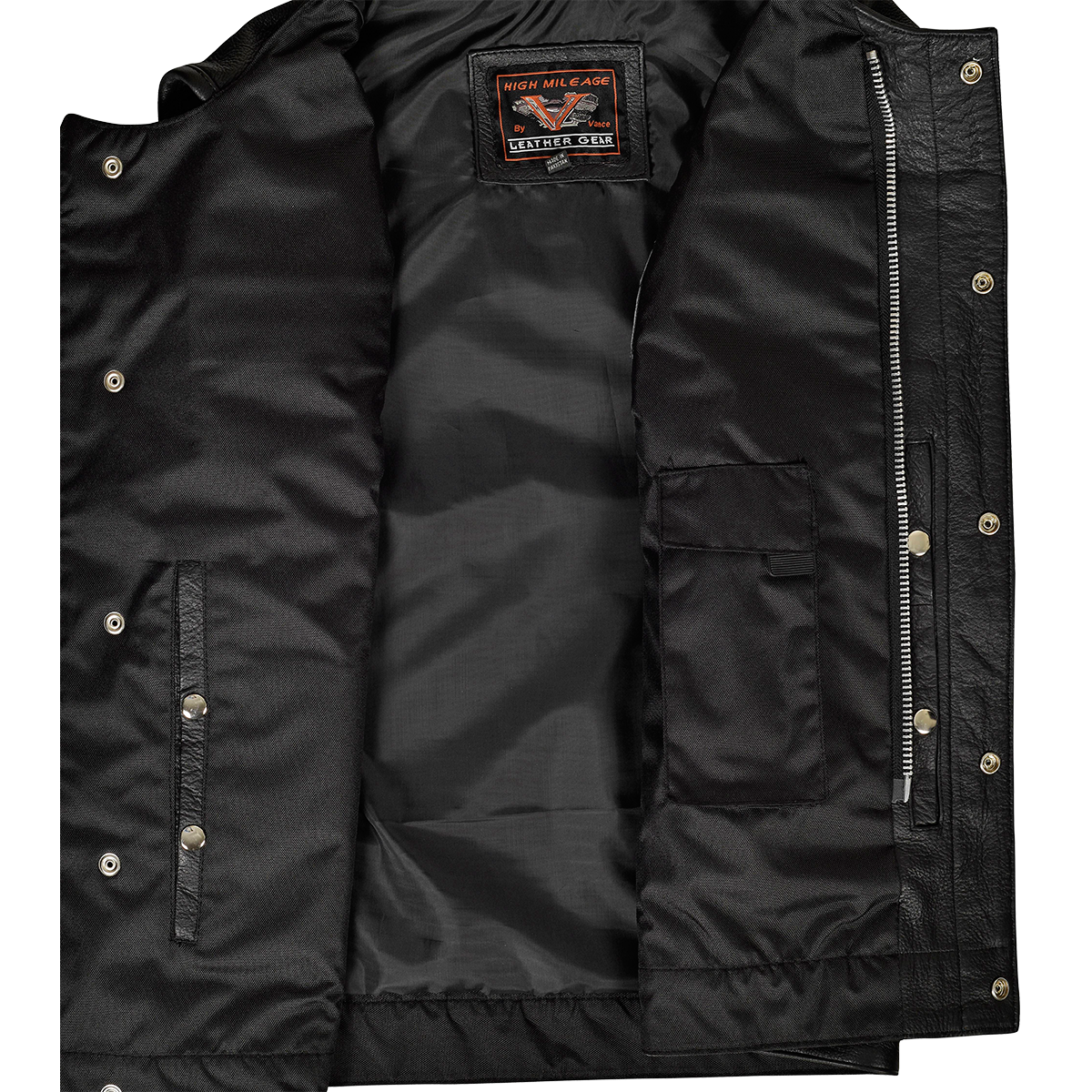 Men\'s Zipper and Snap Closure Leather Motorcycle Club Vest Quick Access Gun Pocket