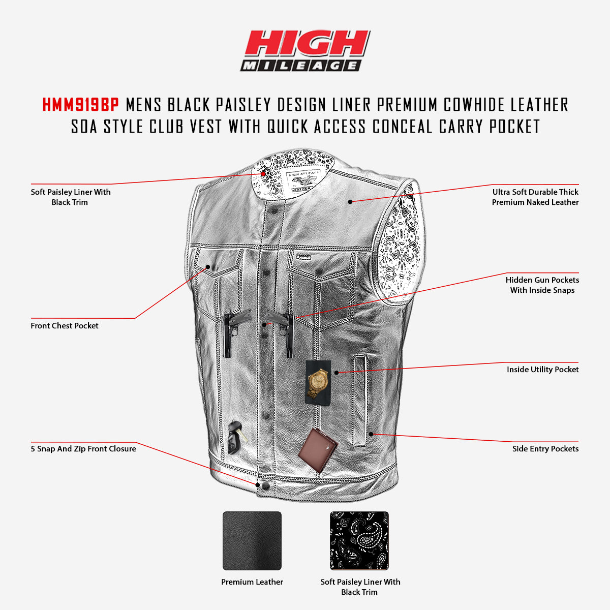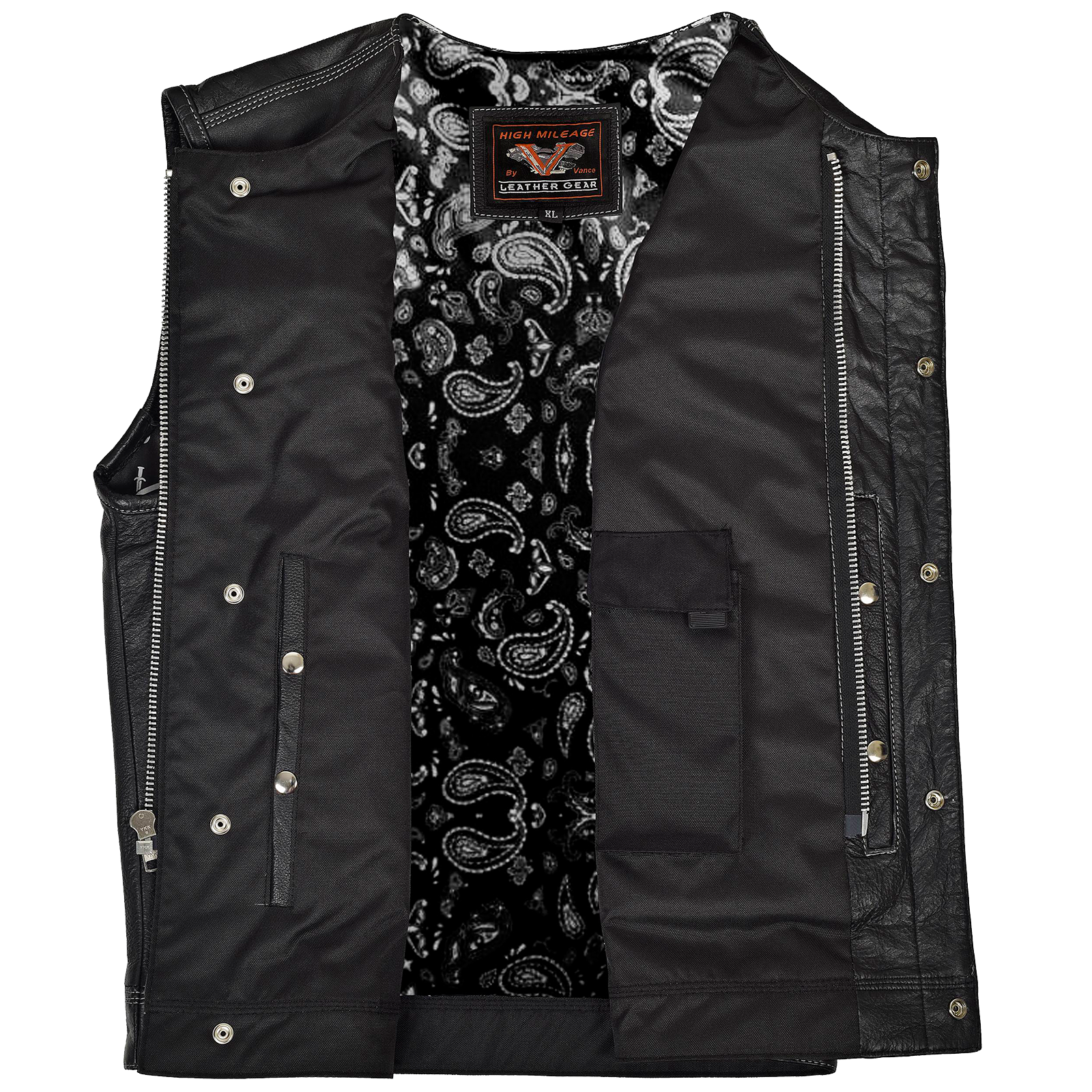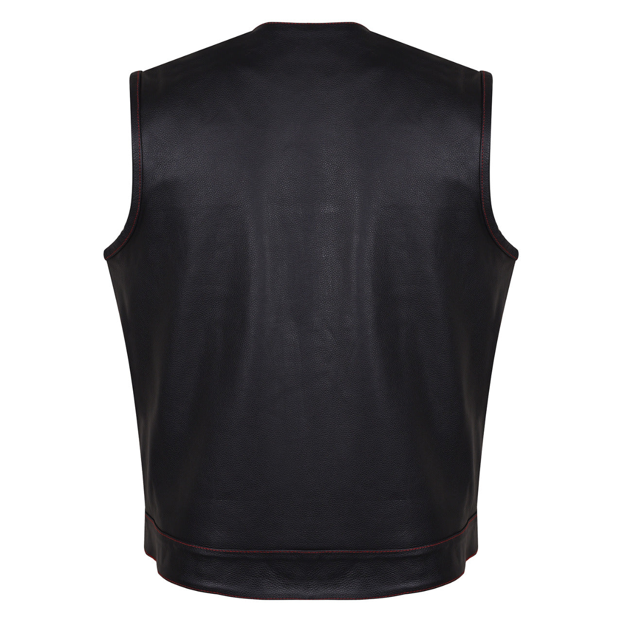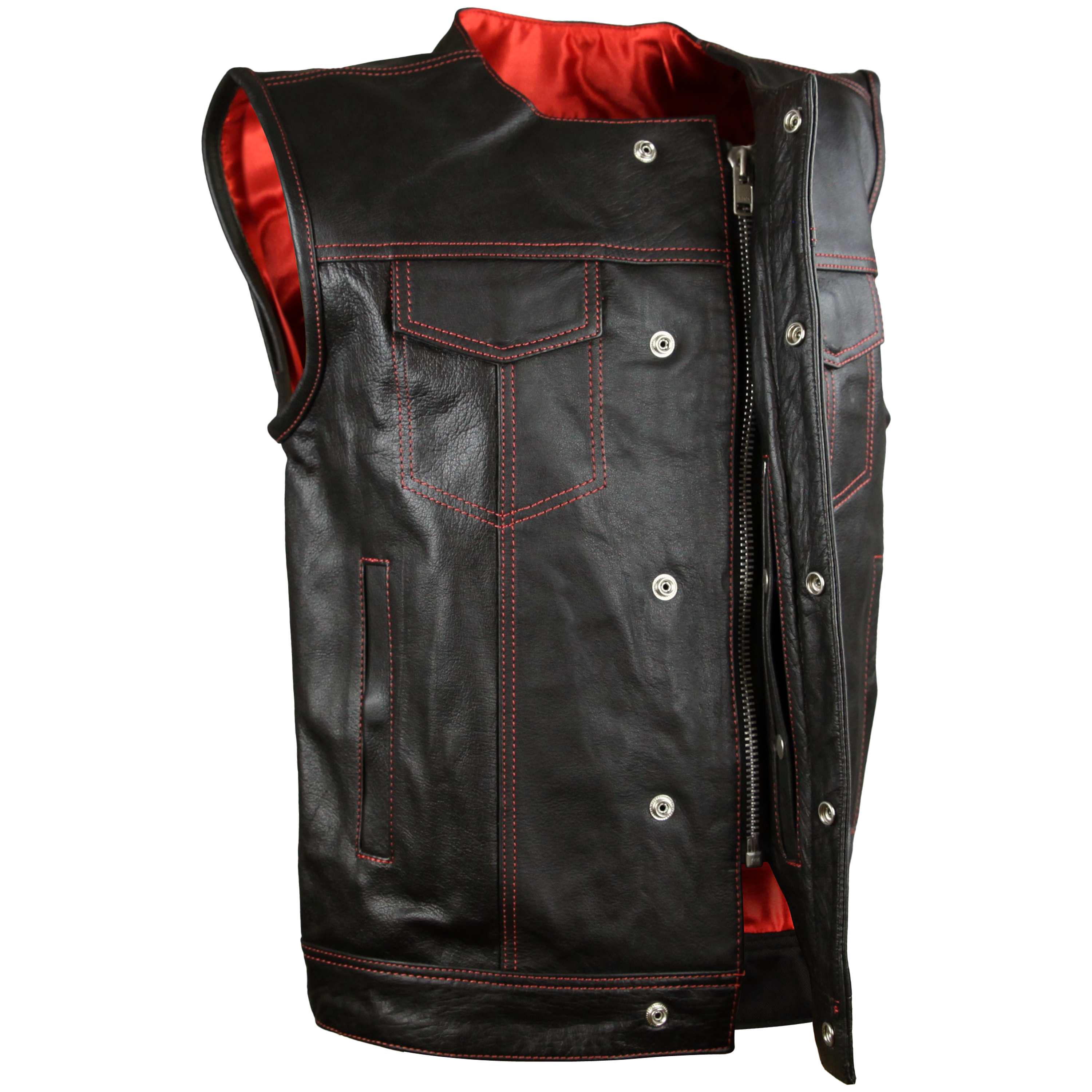 Men\'s Zipper and Snap Closure Leather Motorcycle Club Vest Quick Access Gun Pocket
