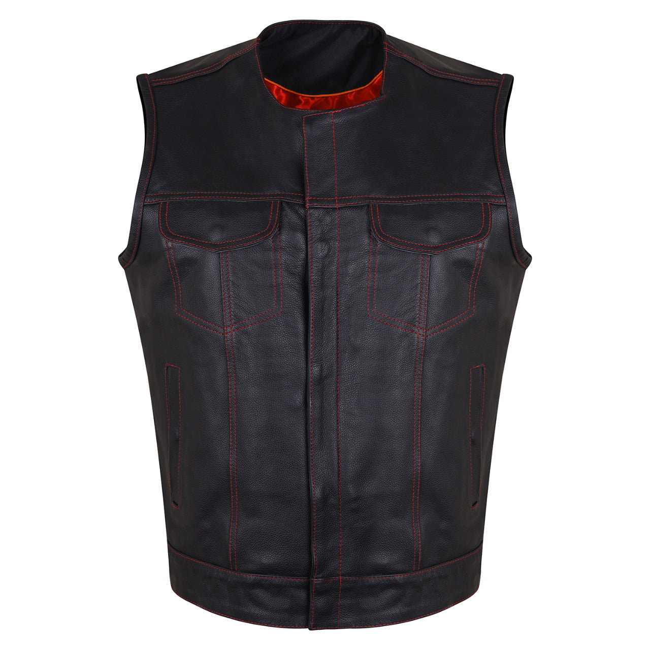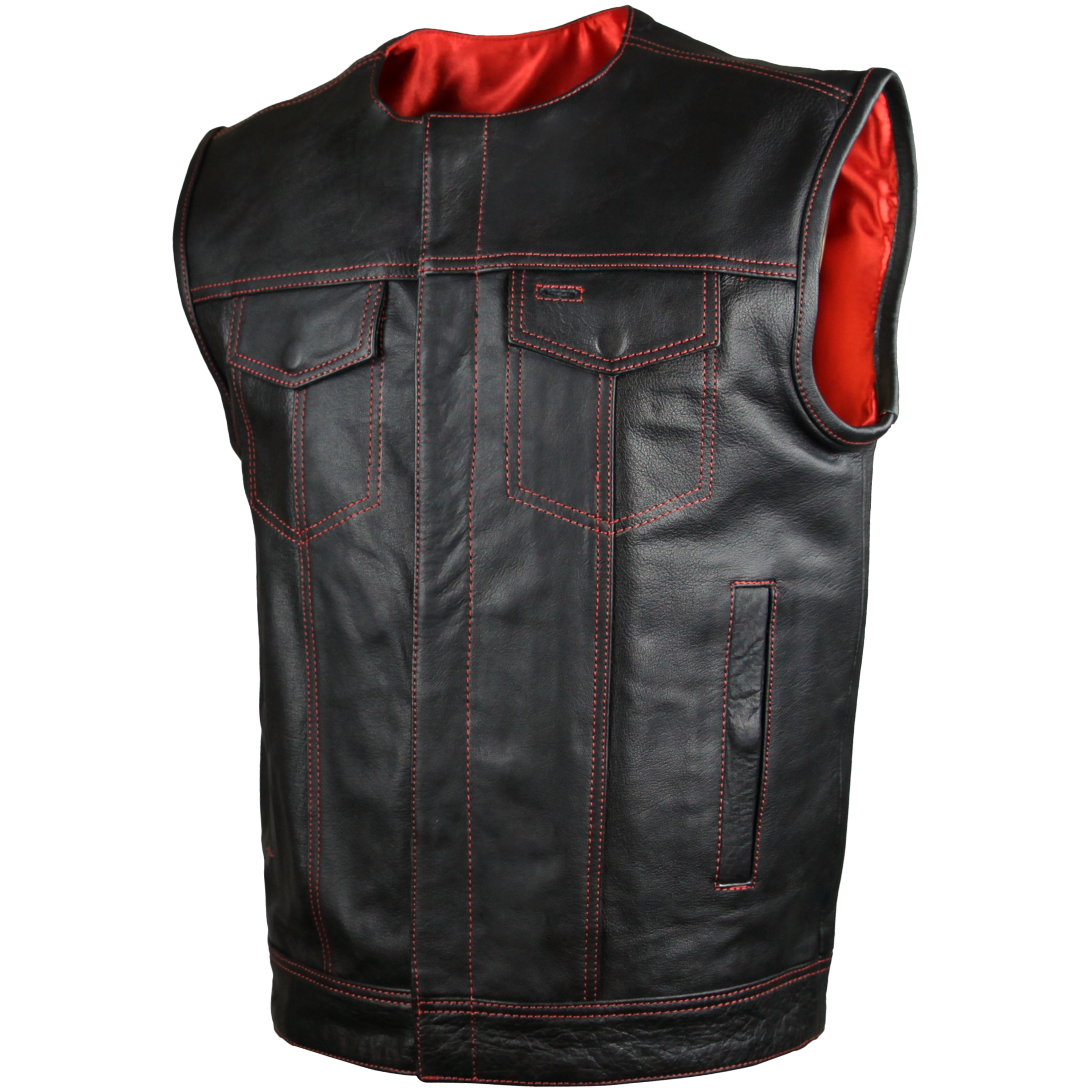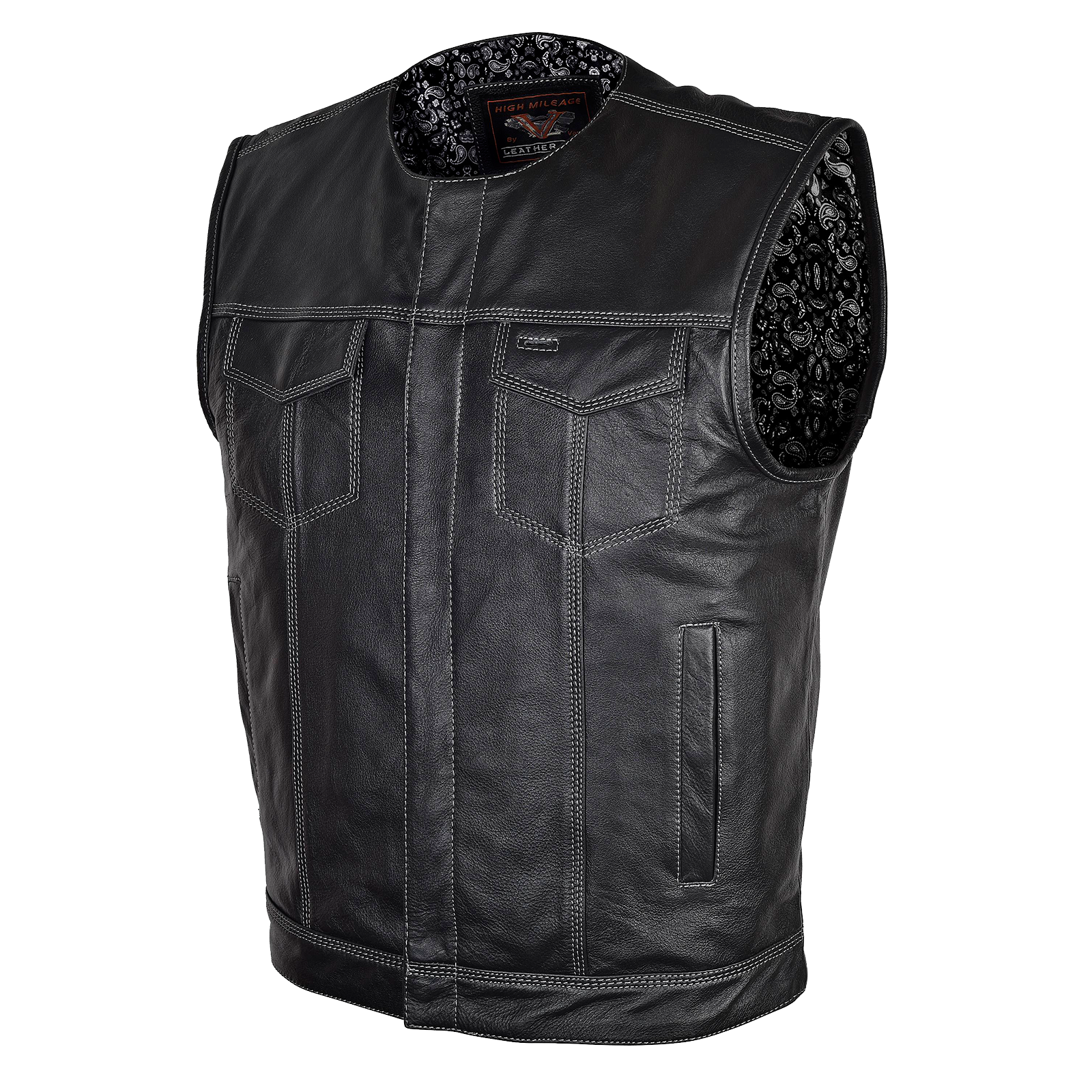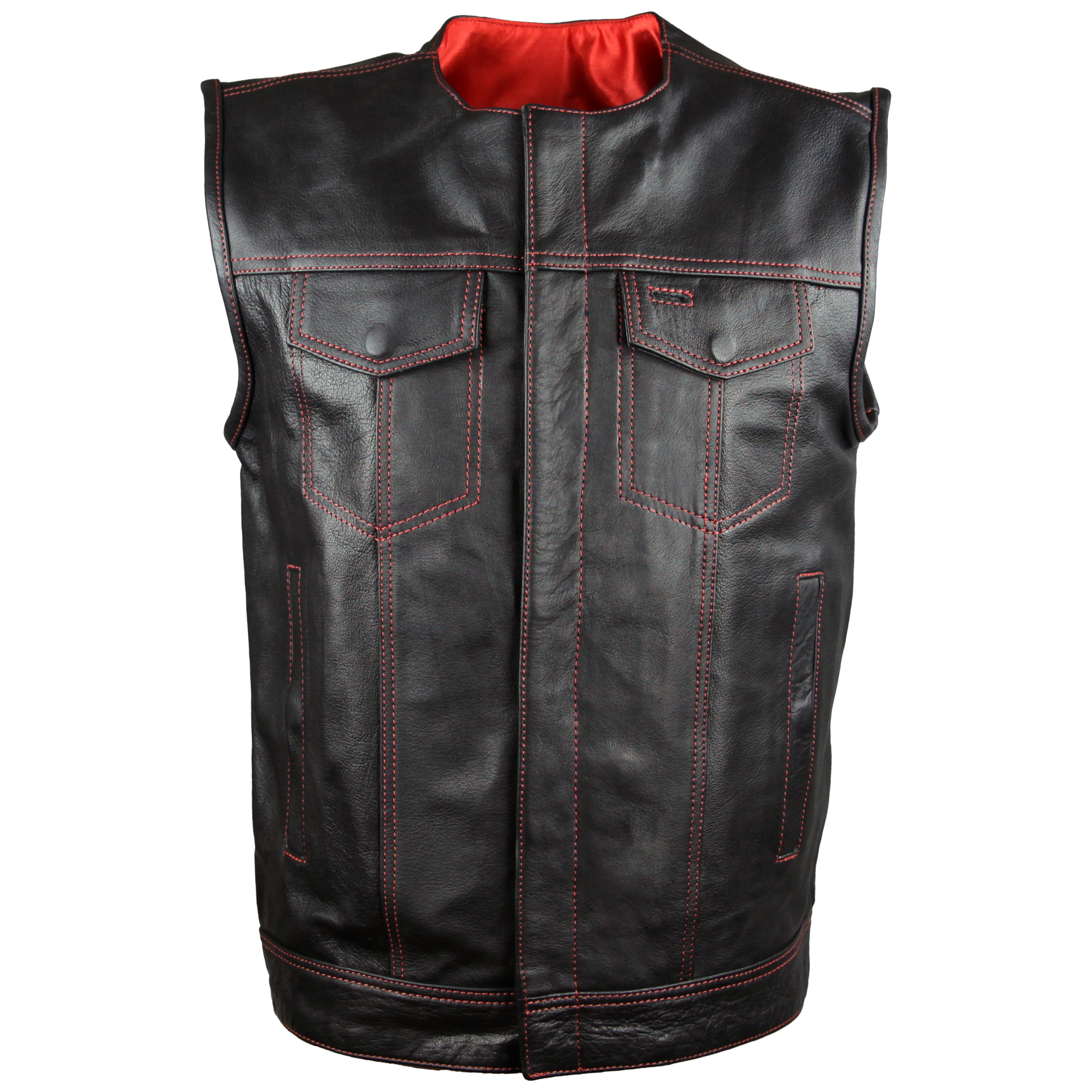Men\'s Zipper and Snap Closure Leather Motorcycle Club Vest Quick Access Gun Pocket