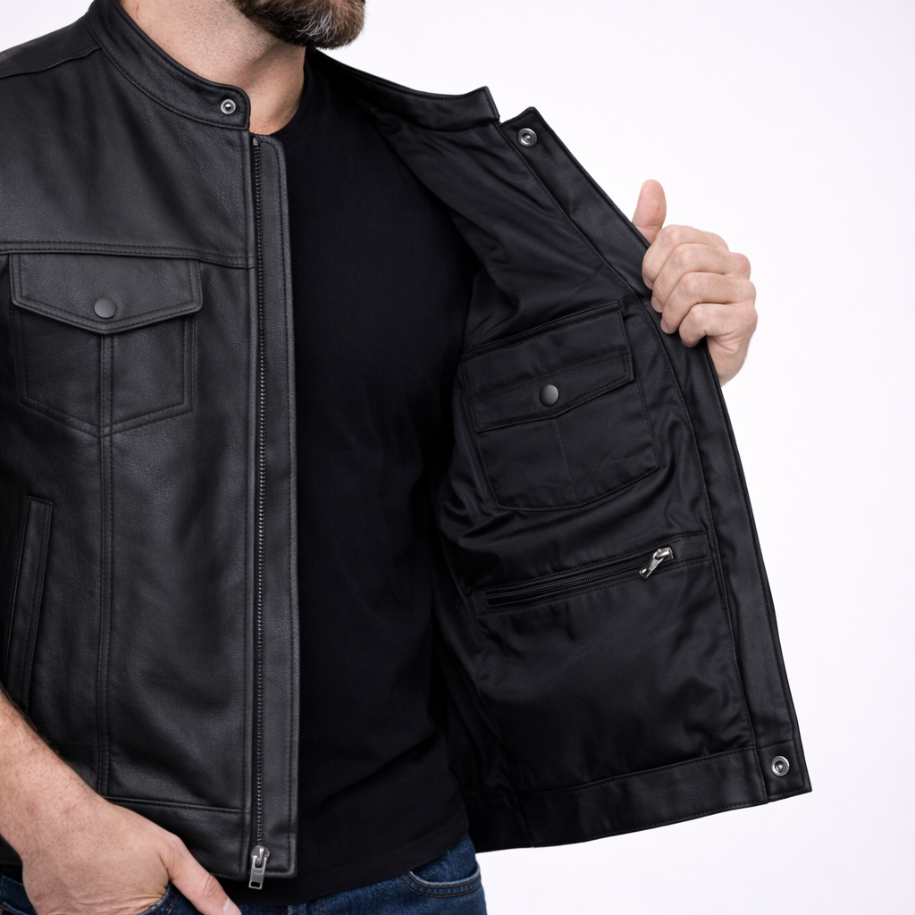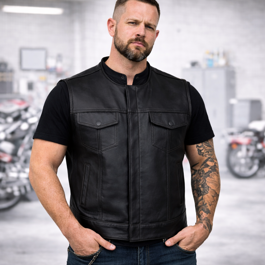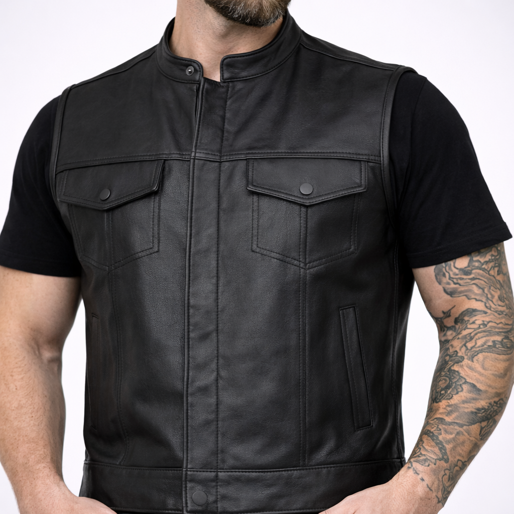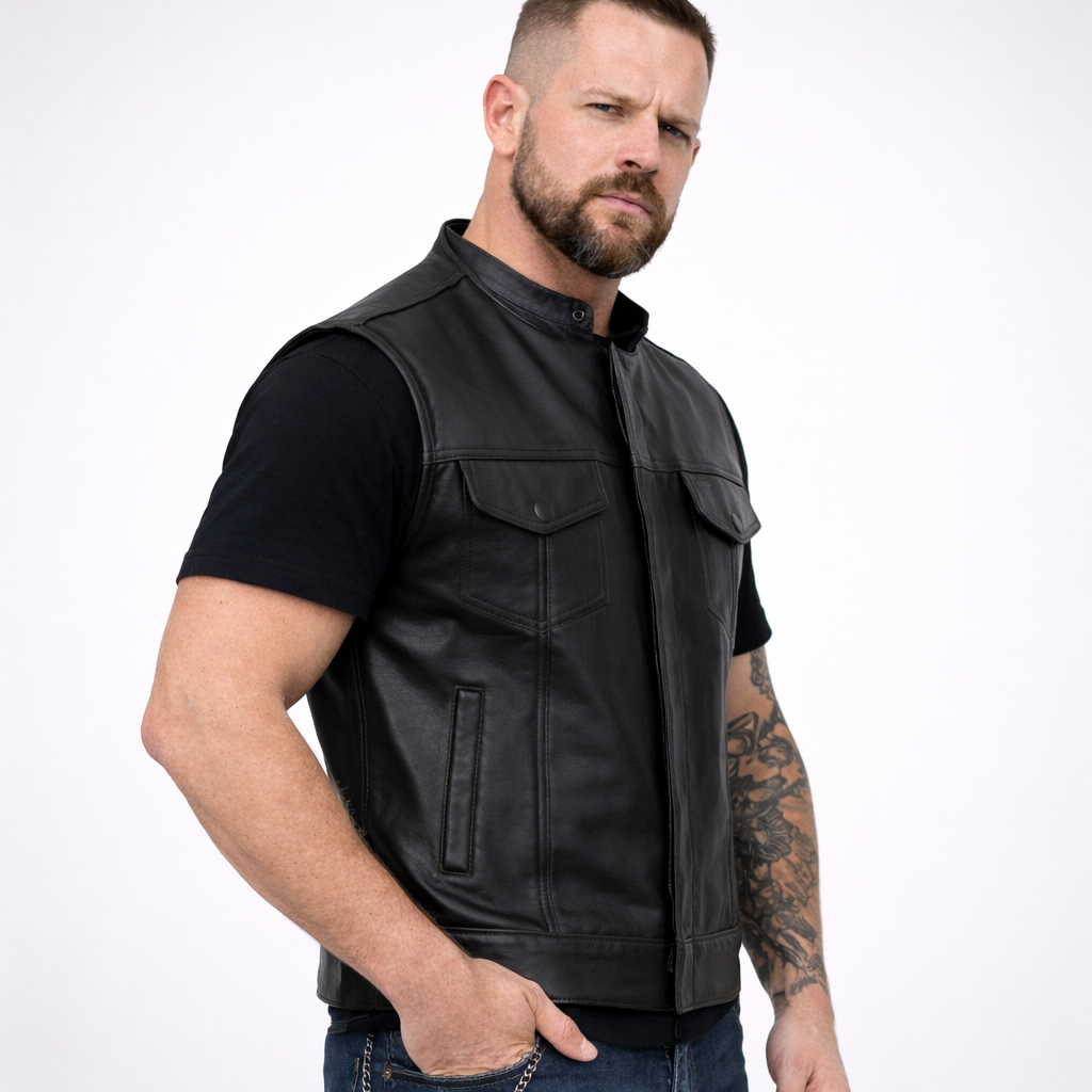 Built for the road and designed for serious riders, this SOA-style motorcycle club vest is crafted from ultra-soft, thick premium cowhide leather known for durability, strength, and long-term wear. Structured, substantial, and purpose-built — this is not a lightweight fashion vest.