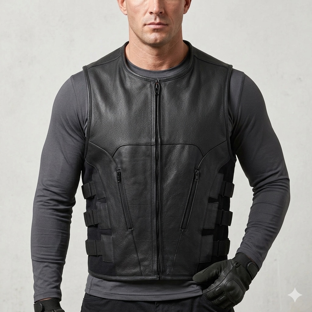Men's SWAT Style Premium Leather Motorcycle Vest