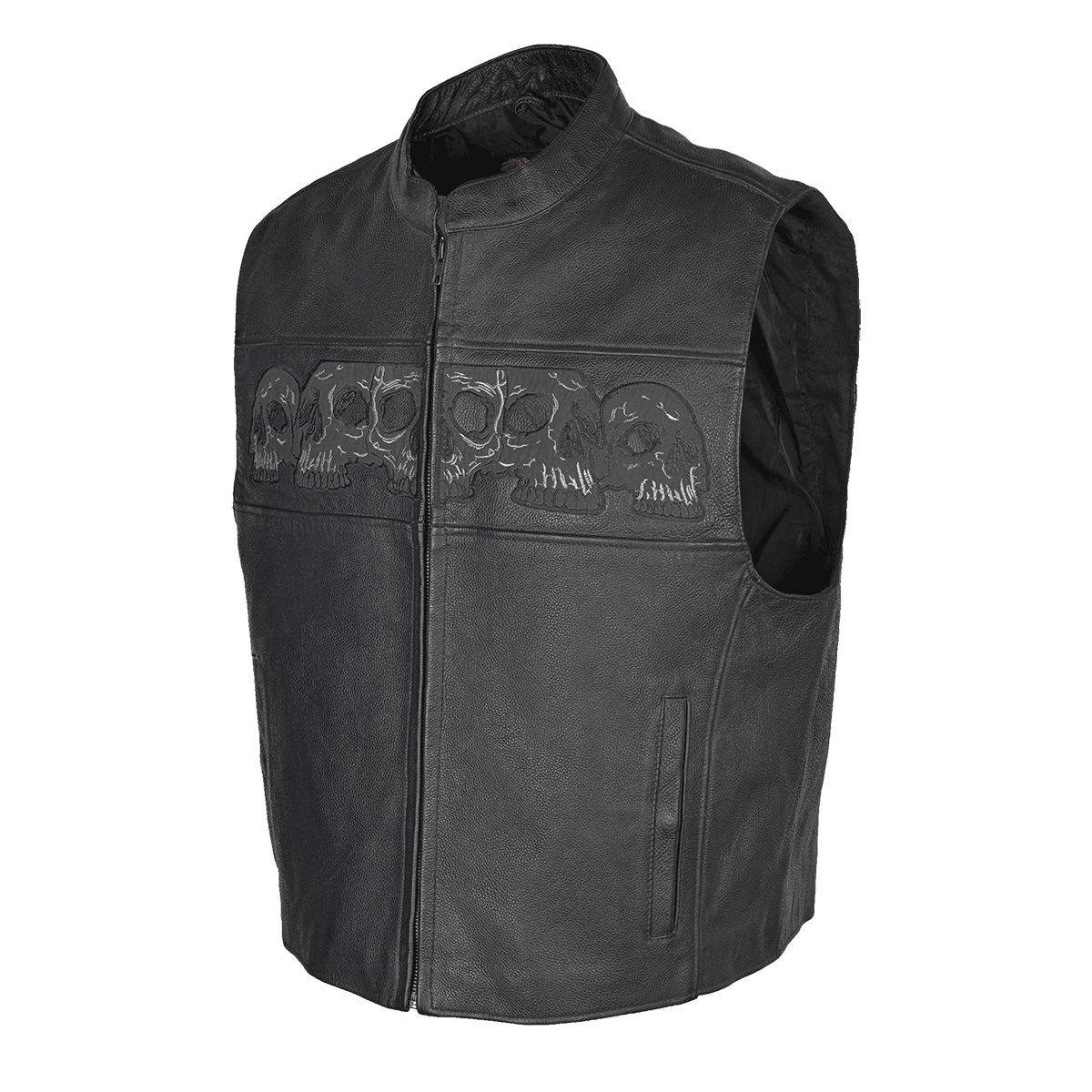 Reflective Skull Leather Motorcycle Vest Features