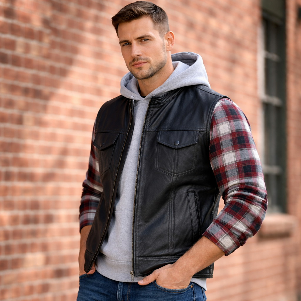 Men’s Black Leather Motorcycle Club Vest