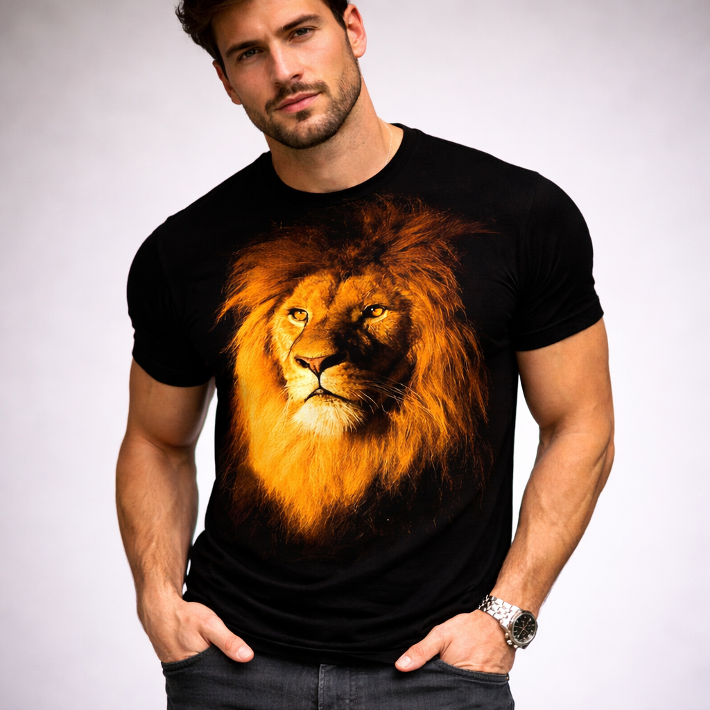 Men's Graphic Print T-Shirt Glorious Lion's Mane Graphic Crew Neck - Short Sleeve - Fashion Tee