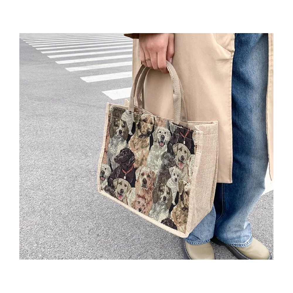 Tapestry tote bags are the rage these days. Gives you an earth friendly look. They are generally large and simple and good for your grocery run, picnics, carrying baby stuff etc.