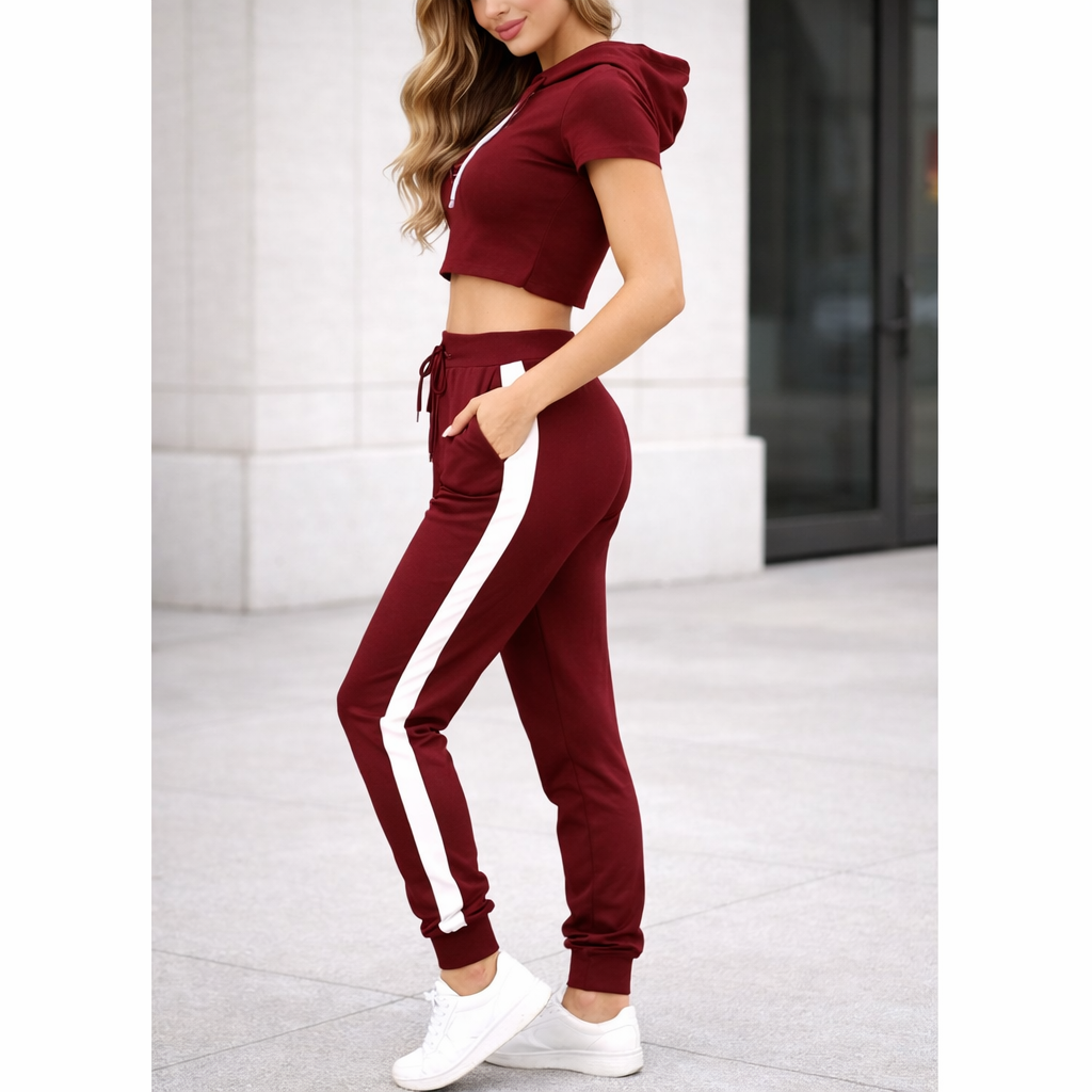 Elevate your casual wardrobe with this stylish 2-piece cropped hoodie and jogger pants set. Designed for everyday wear, lounging, or light outings, this matching tracksuit combines comfort with a flattering modern silhouette.