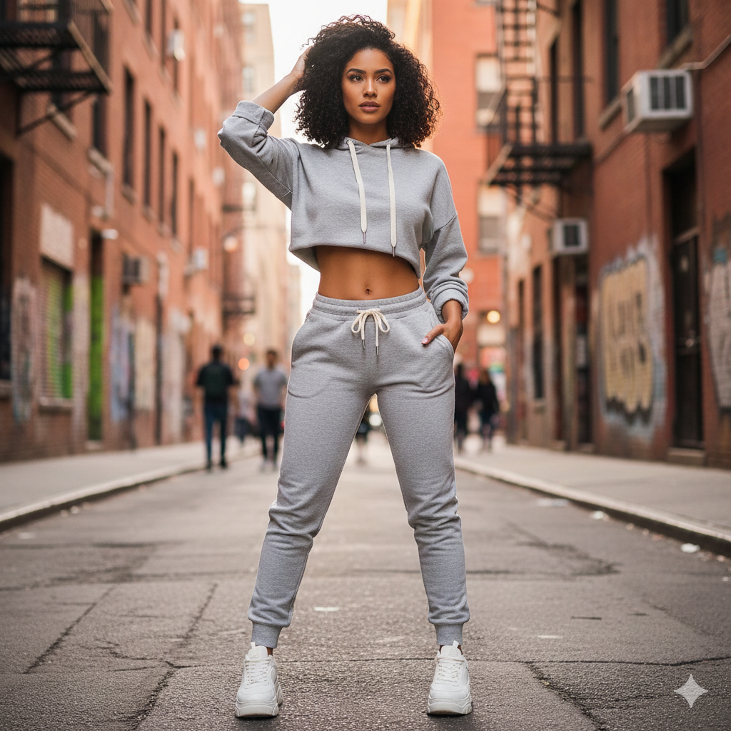 Women's 2 piece Tracksuit Set Full Sleeve Crop top Hoodie and Jogger Pants