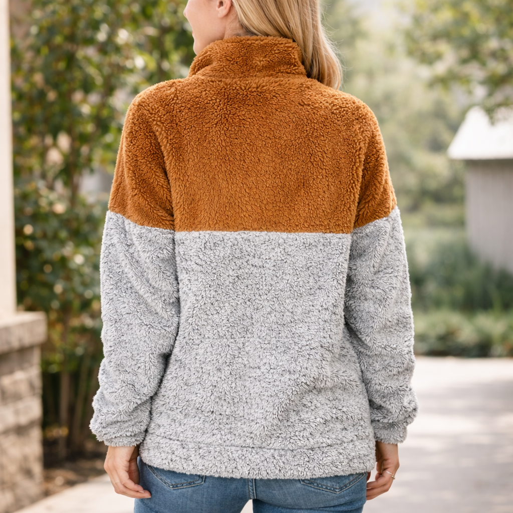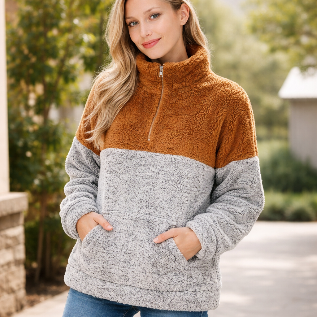 This ultra-cozy sherpa fleece pullover is the perfect throw-on layer for cooler days. Designed with a relaxed fit, a high mock collar, and a quarter-zip neckline, it keeps you warm without feeling bulky or restrictive.