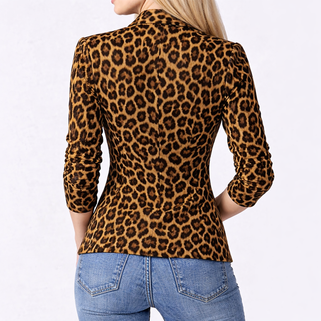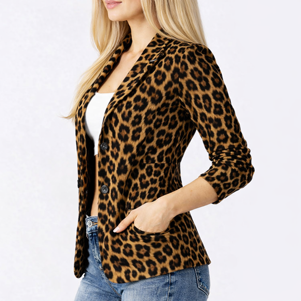 This versatile leopard print topper is the perfect in-between layer when you want to elevate your look without adding bulk. Designed to look like a blazer but feel as light as a shirt, it instantly transforms a simple outfit into a more polished, semi-formal look.