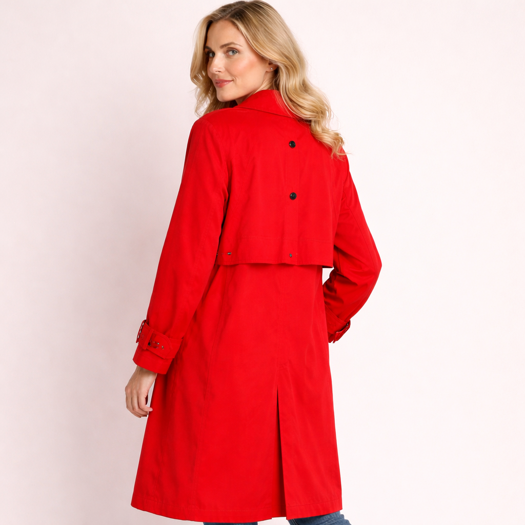 Classic London Fog trench coat in a bold red color. A timeless, easy-to-style piece that works for workwear, travel, and everyday layering. This coat is pre-owned and presents well.