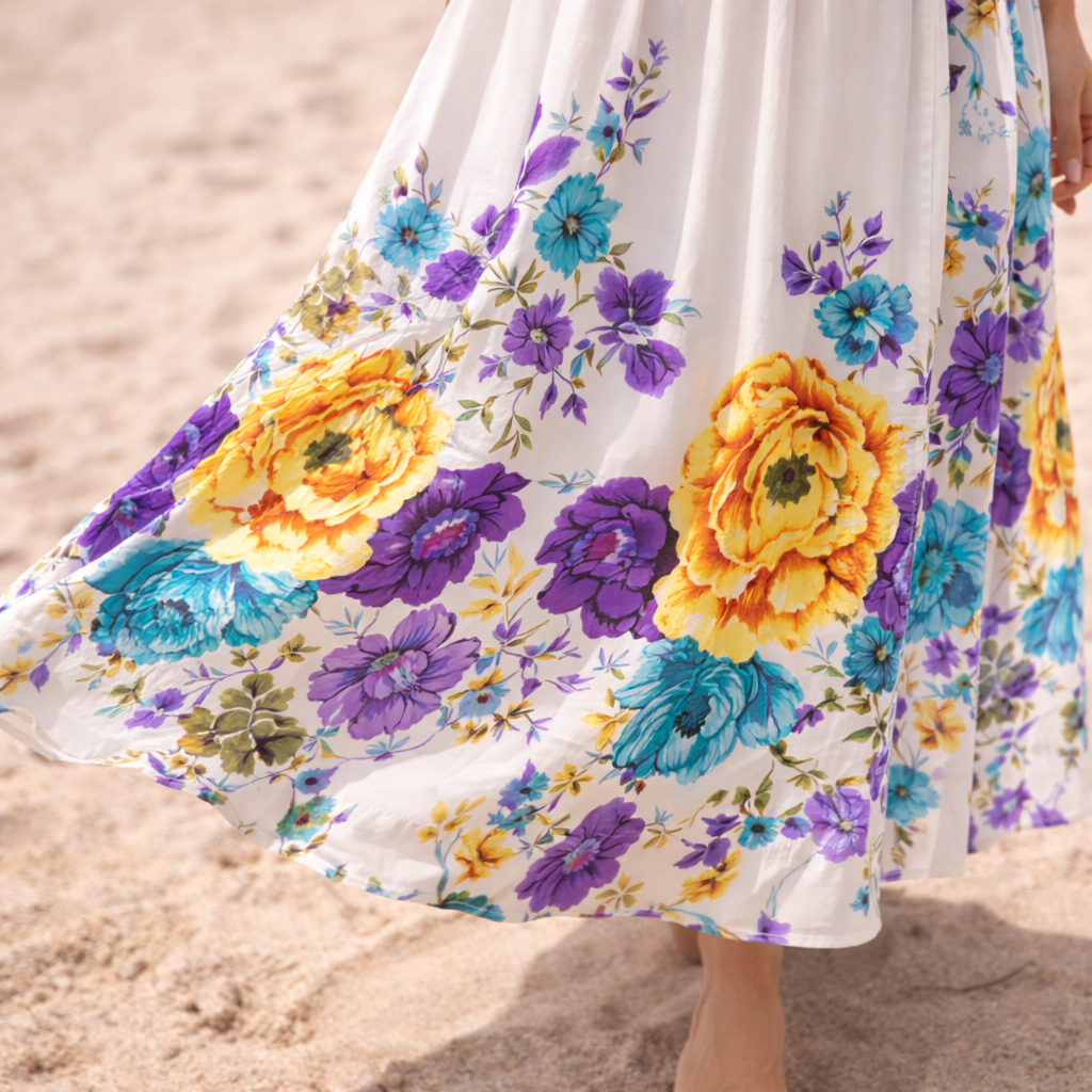 - Vibrant floral print: Bold, cheerful colors that feel vacation-ready.