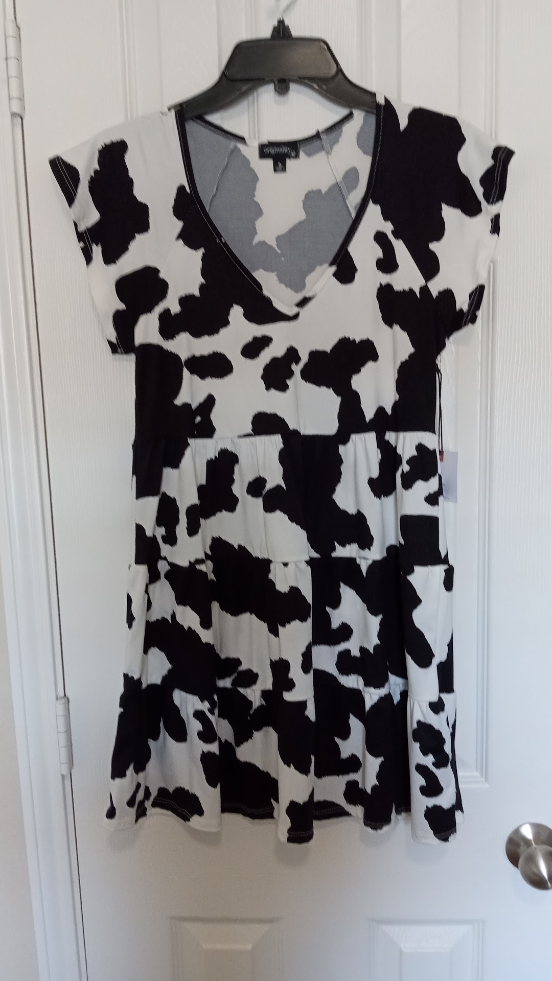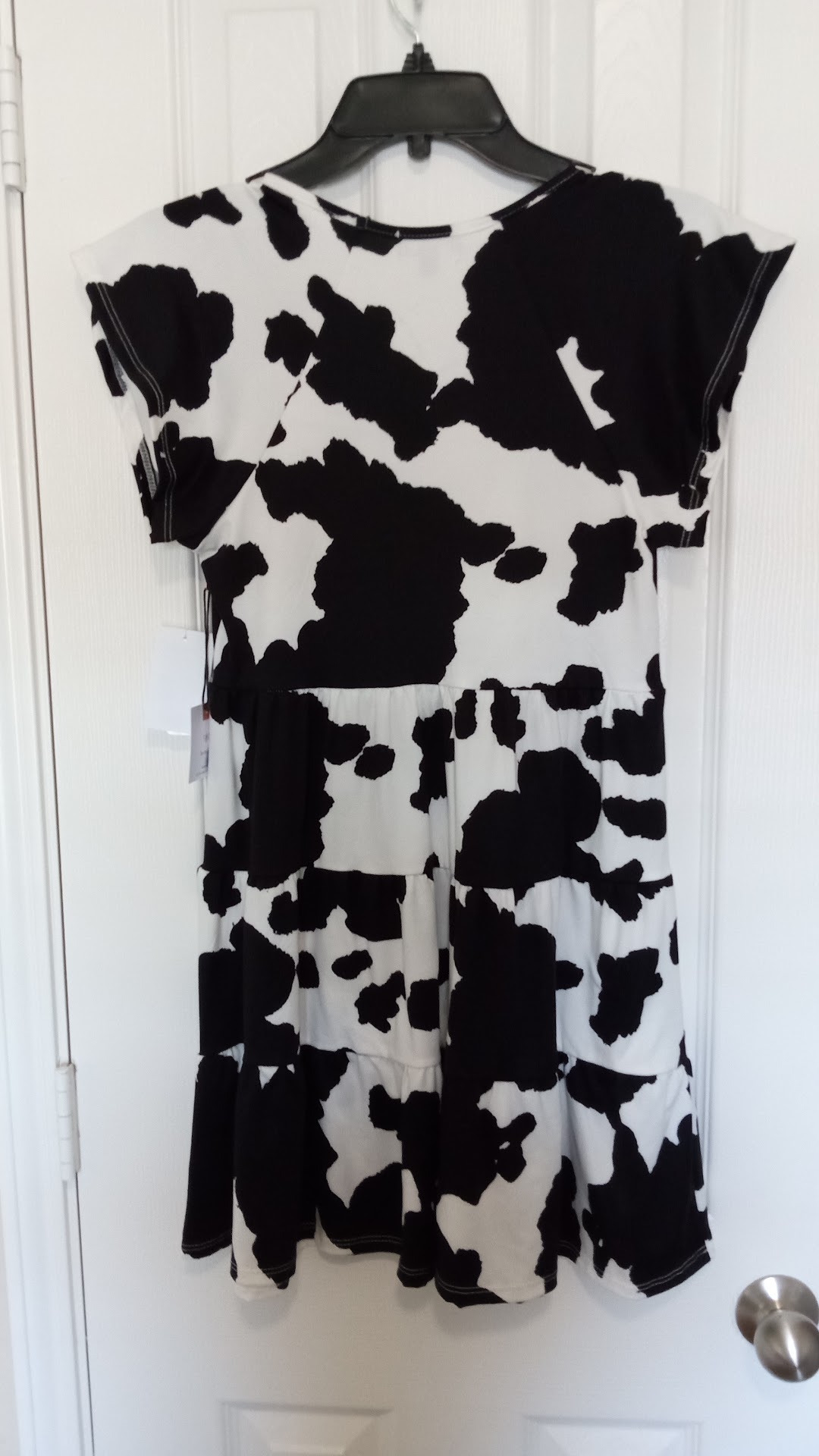 Feel cool and cutesy in this cow printed micro mini dress.An easy, pullover style in a soft and cool rayon.