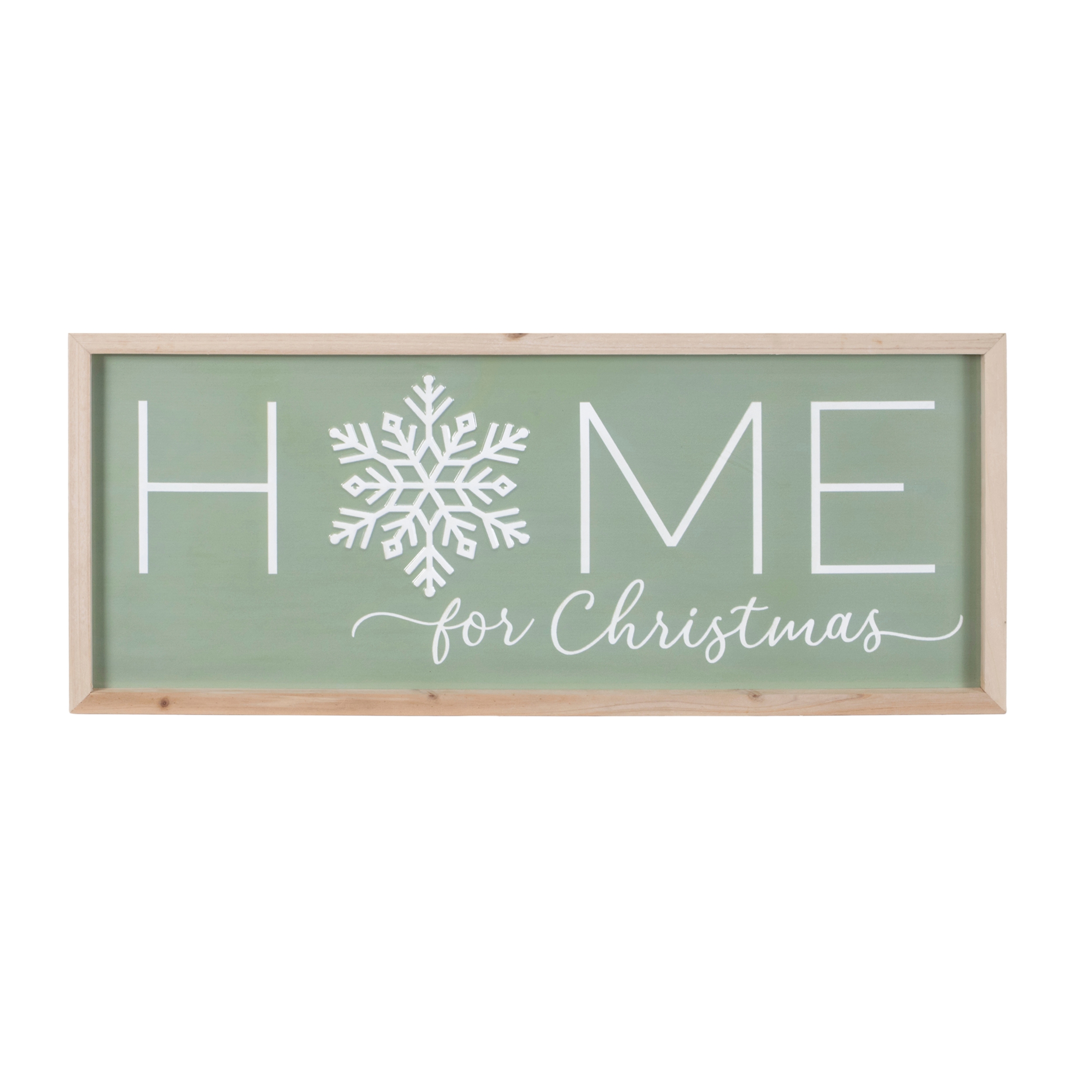 Celebrate the warmth of the season with this Home for Christmas snowflake framed wall sign, a charming accent that instantly makes any space feel cozy and inviting. Featuring a soft sage green background, bold white lettering, and a stylized snowflake accent, this festive sign blends modern farmhouse style with timeless holiday sentiment. The natural wood frame adds warmth and contrast, making it perfect for entryways, living rooms, mantels, or above a console table. Whether displayed as part of your Christmas gallery wall or styled as a standalone statement piece, this decorative holiday wall art brings heartfelt charm and seasonal spirit to your home d cor.