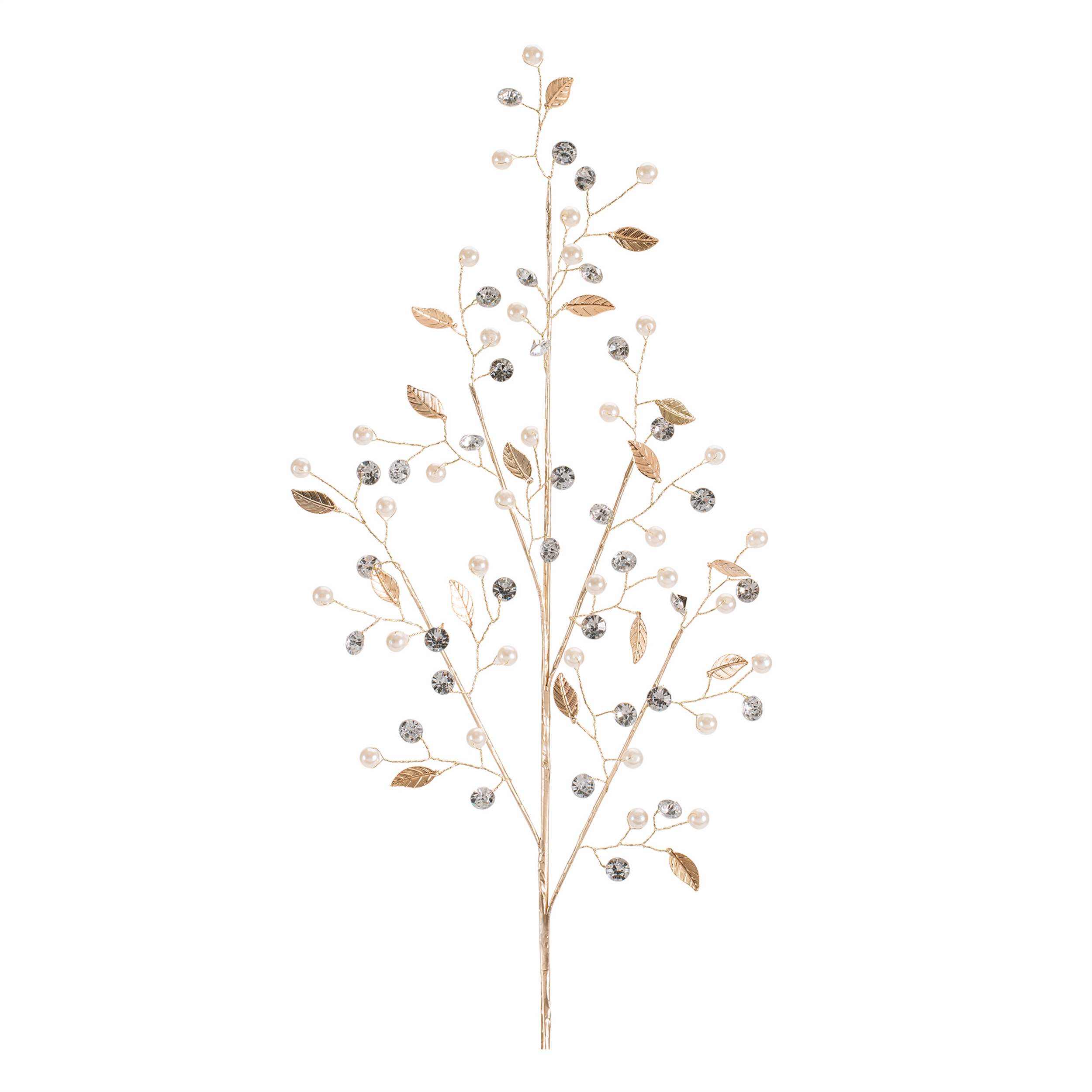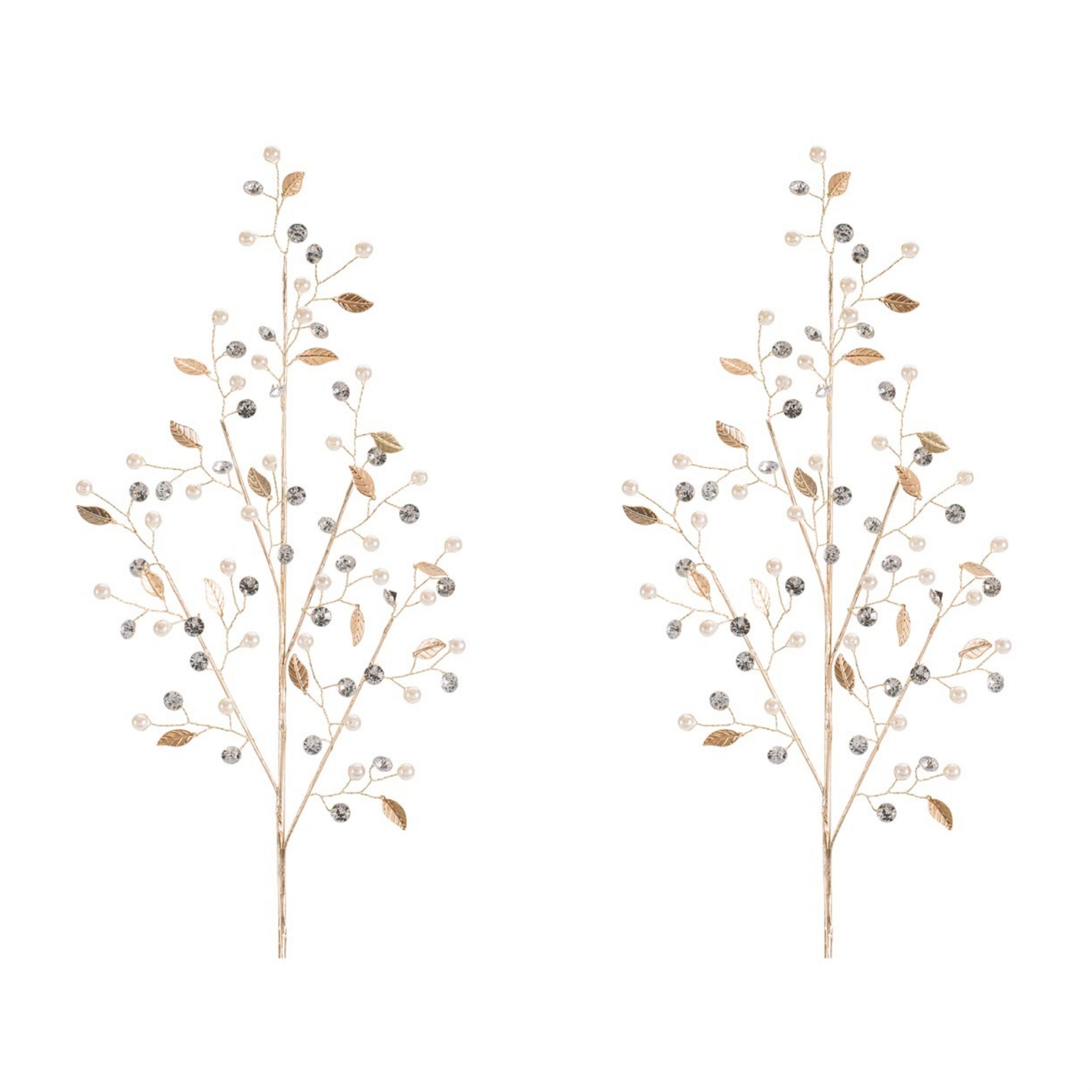 - Set of two decorative sprays featuring pearl-like accents, faceted jewel details, and metallic leaf elements