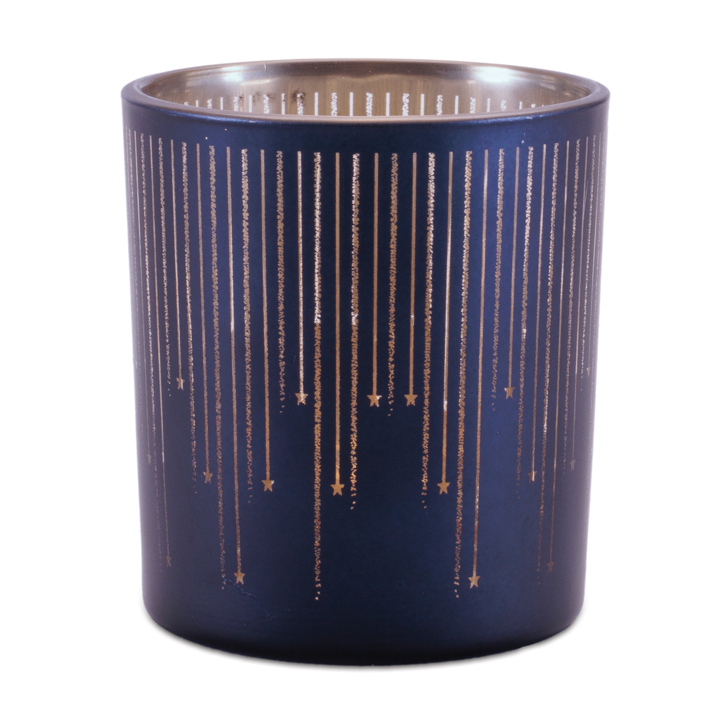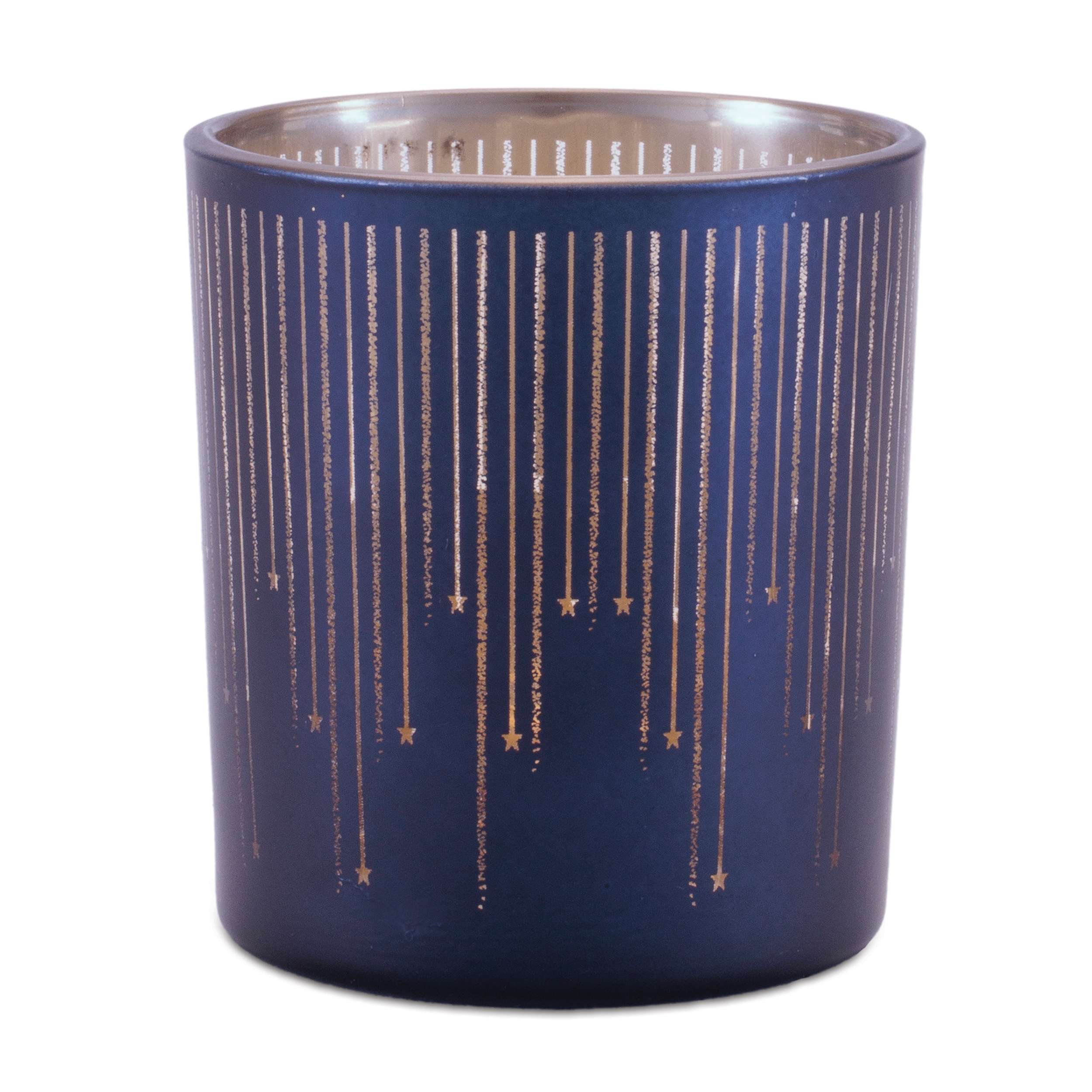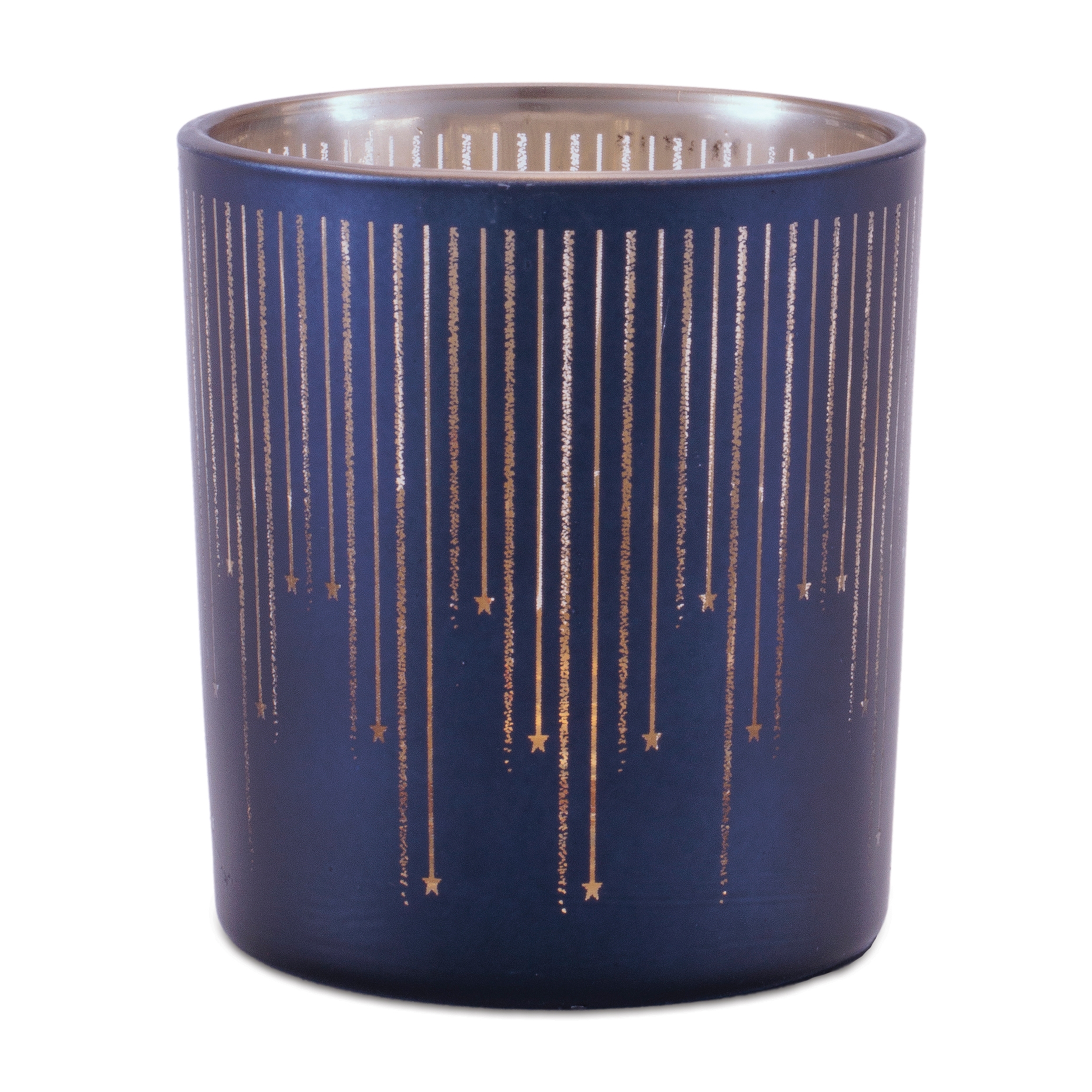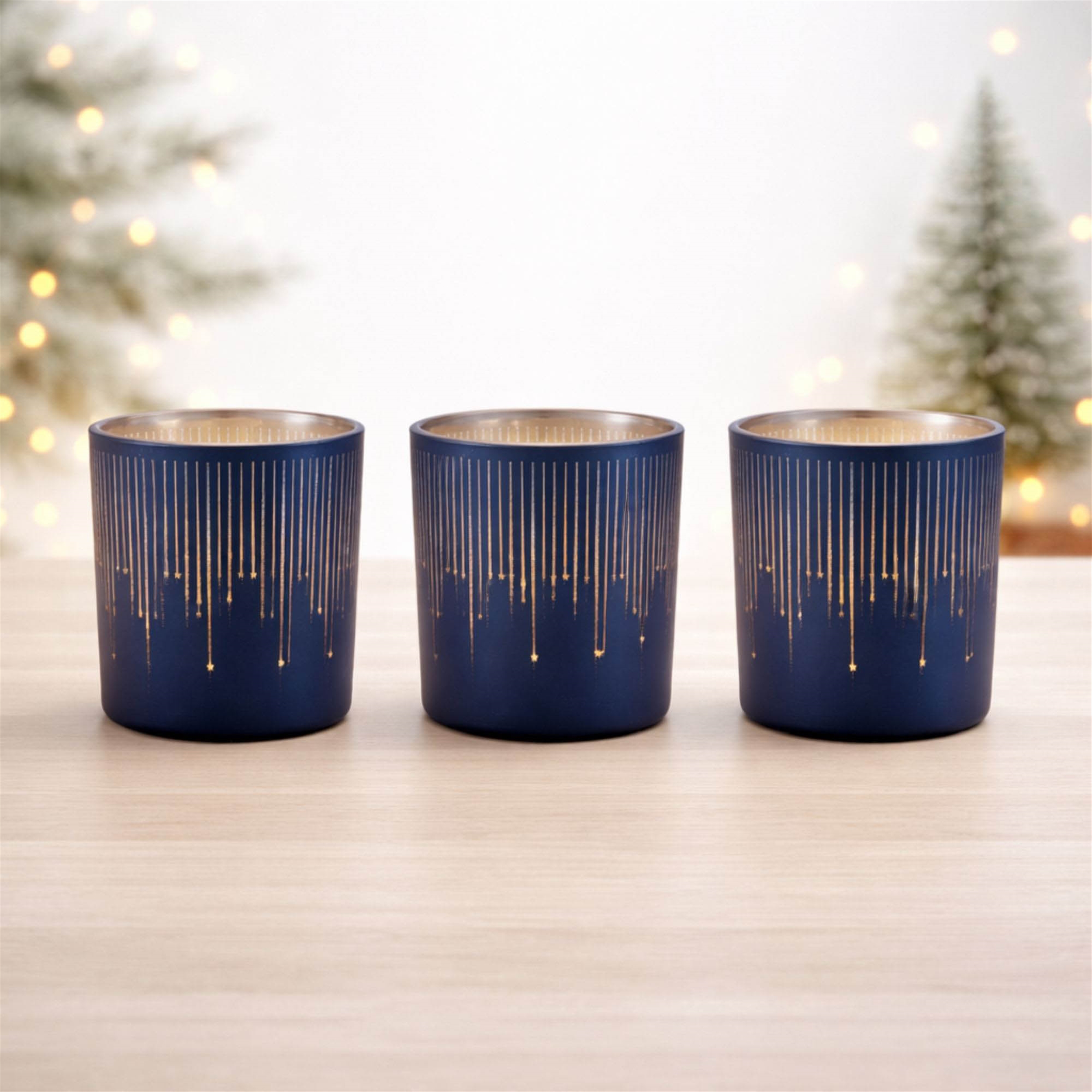 Elevate your home d cor with the Patterned Glass Votive Holder Set, a perfect blend of modern elegance and warm ambiance. Featuring a frosted navy blue exterior and a radiant metallic champagne interior, these decorative glass candle holders are designed to beautifully reflect candlelight and create a soft, inviting glow. The contemporary stripe pattern adds texture and visual interest while allowing light to shine through for a stunning illuminated effect. Ideal for holiday tablescapes, wedding centerpieces, or everyday mantel and bookshelf styling, this set of three votive holders brings layered warmth and sophisticated charm to any space.