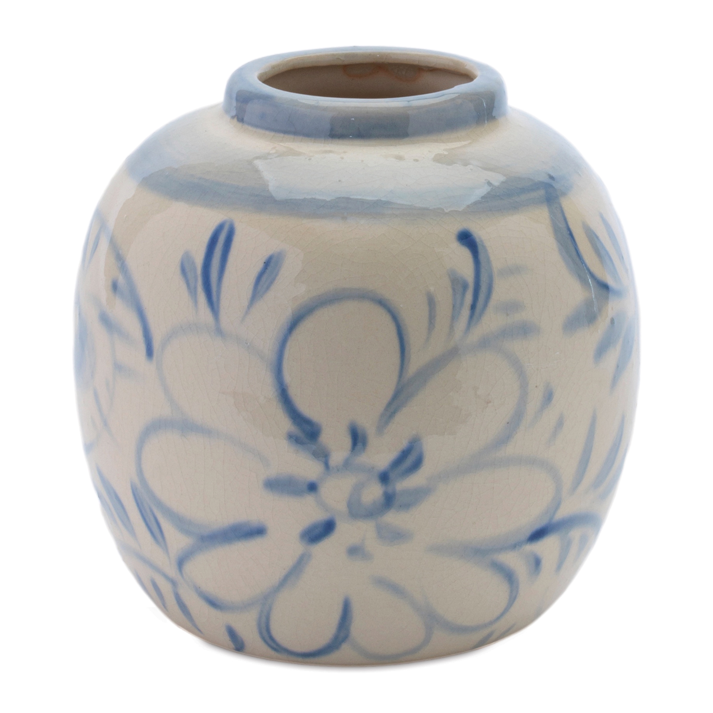 Add a touch of timeless charm to your space with this Blue Floral Stoneware Decorative Container. Showcasing a floral motif in soft blue tones against a creamy neutral background, this piece brings classic elegance with a fresh, artisan feel. The rounded silhouette and glossy glazed finish enhance its traditional appeal, making it a beautiful accent for coastal, cottage, farmhouse, or transitional d cor styles. Perfect for displaying faux florals, greenery, or decorative stems, this versatile container also works beautifully as a standalone statement piece on consoles, shelves, kitchen counters, or dining tables. Its graceful floral pattern and soft color palette make it an effortless way to brighten and elevate any room.