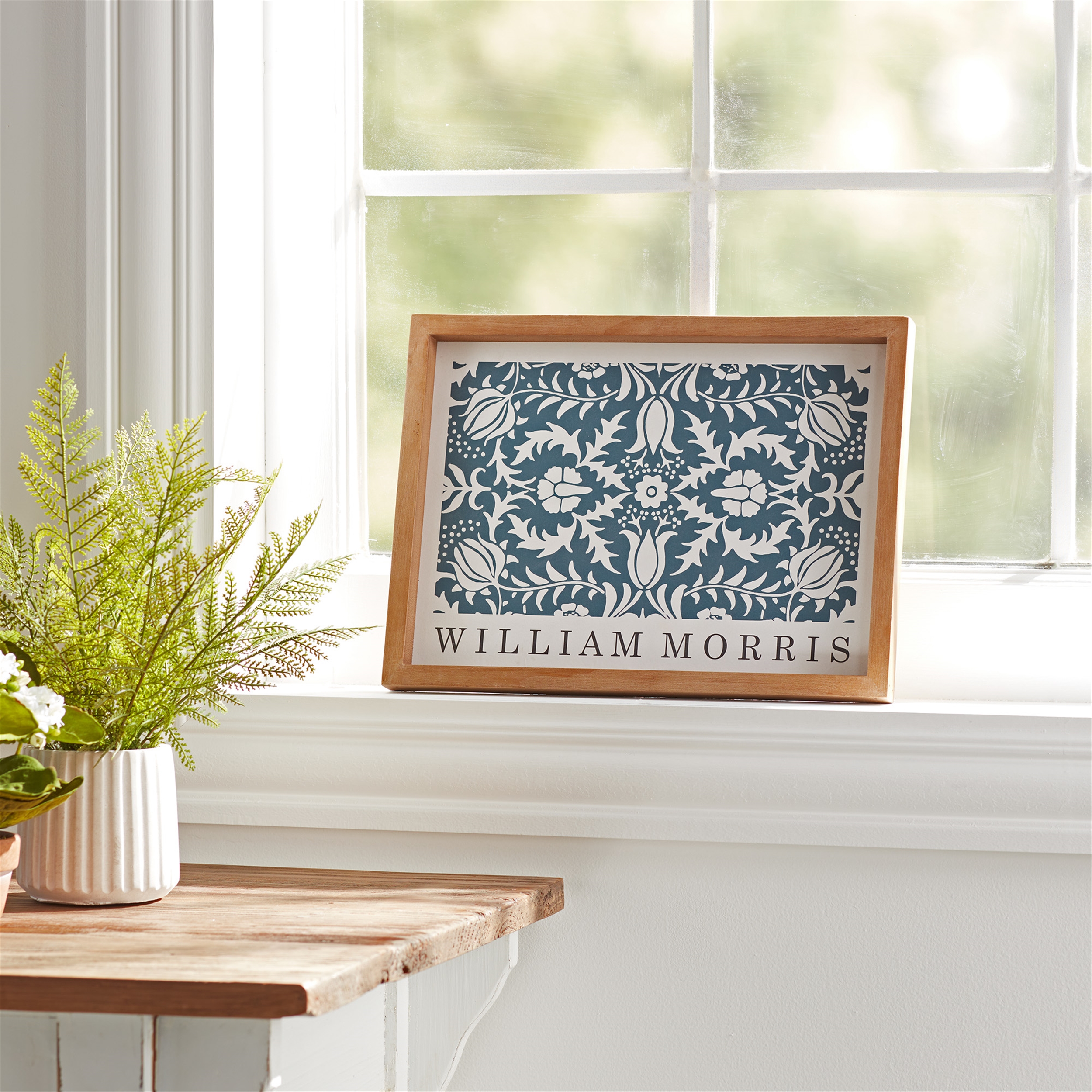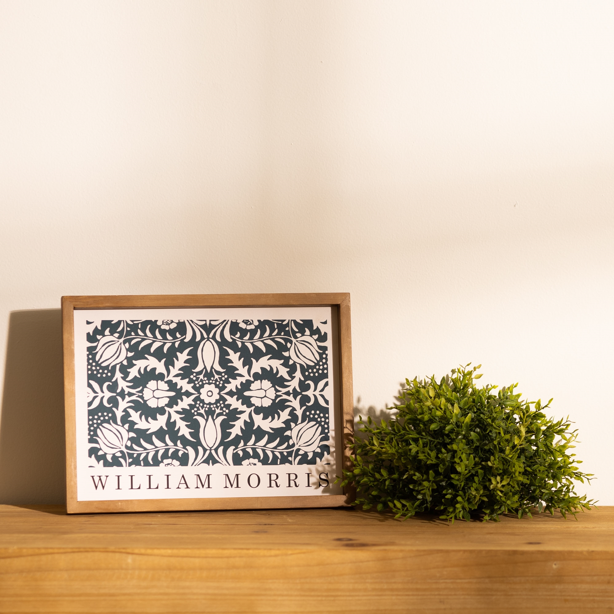 Celebrate timeless design with this William Morris Floral Pattern Framed Wall Print, featuring a classic Arts and Crafts inspired botanical motif in rich blue and soft ivory tones that brings heritage charm and refined elegance to any space. The intricate floral and foliage pattern captures the beauty of traditional English textile design, while the warm wood frame adds natural character that complements cottage, traditional, vintage, and modern farmhouse d cor. Perfect for living rooms, home offices, reading nooks, bedrooms, or gallery walls, this decorative framed wall art offers a sophisticated statement piece that blends history, artistry, and everyday style.