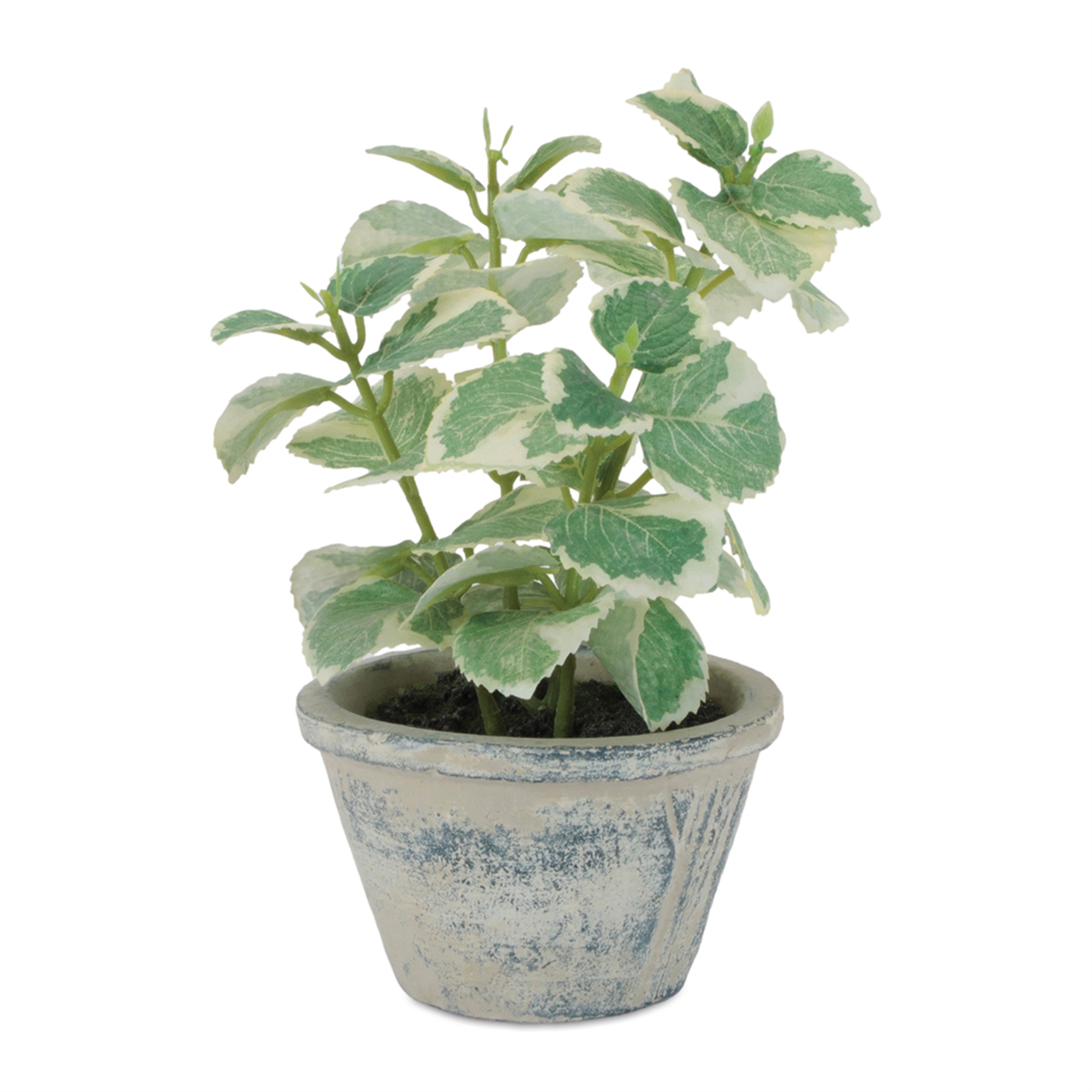 Brighten your space with the fresh, airy look of this Potted Variegated Swedish Ivy. Showcasing beautifully detailed green leaves edged in soft cream, this faux plant captures the charm of real Swedish ivy with lifelike texture and natural color variation. Set in a rustic cement pot with a lightly weathered finish, it blends effortlessly into farmhouse, cottage, coastal, or modern d cor styles. Perfect for kitchen counters, open shelving, desktops, or accent tables, this artificial ivy plant adds year-round greenery and effortless botanical style no watering or sunlight required.