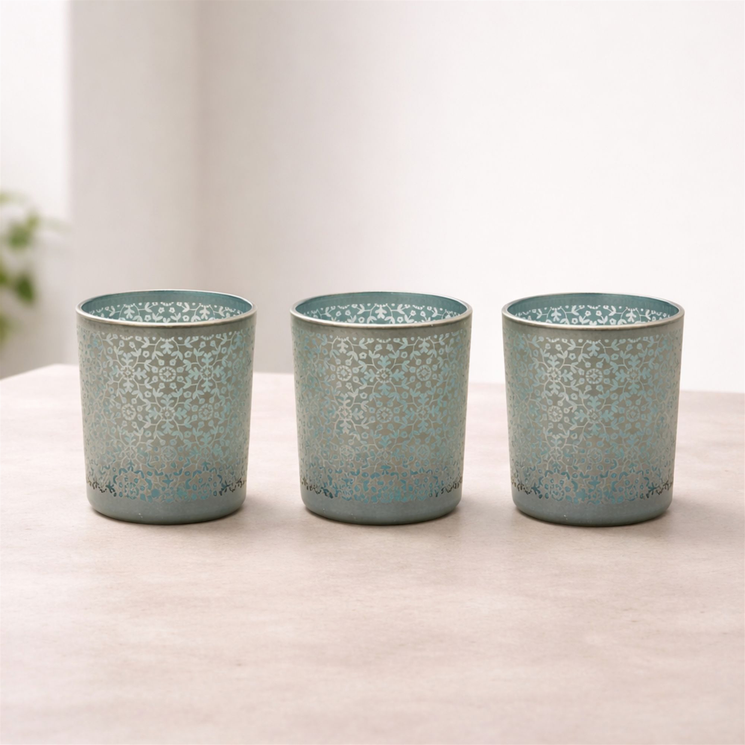 - The perfect size for votive or tealight candles, these holders are sold in a set of three matching pieces.