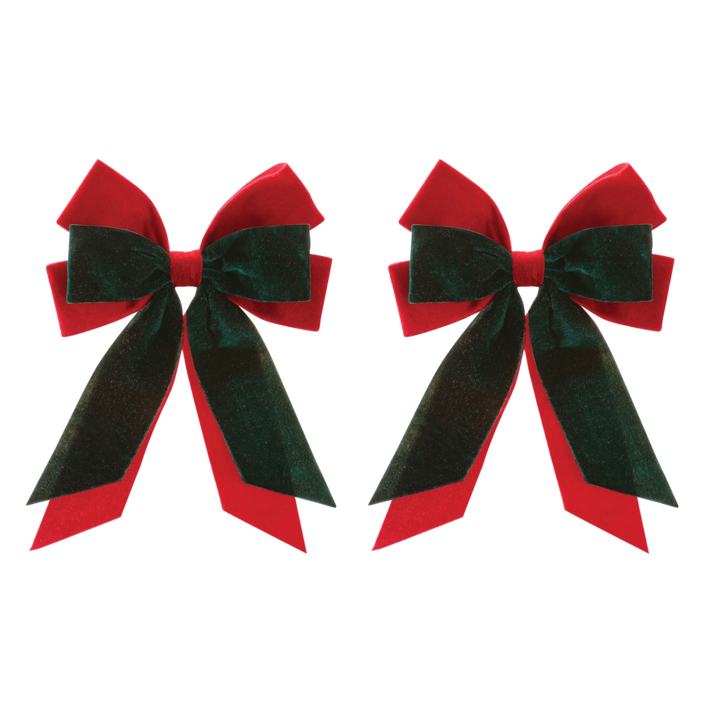 Classic, elegant, and full of holiday charm, this Bow Ornament Set is the perfect finishing touch for your Christmas d cor. Featuring layered red and deep green velvet fabric, these statement bows bring rich color and timeless style to trees, wreaths, garlands, and banisters. The soft texture and bold contrast create a traditional holiday look that pairs beautifully with farmhouse, vintage, or classic Christmas themes. Whether accenting your tree, decorating a front door wreath, or adding flair to wrapped gifts and mantel displays, these festive bows instantly elevate your seasonal styling.