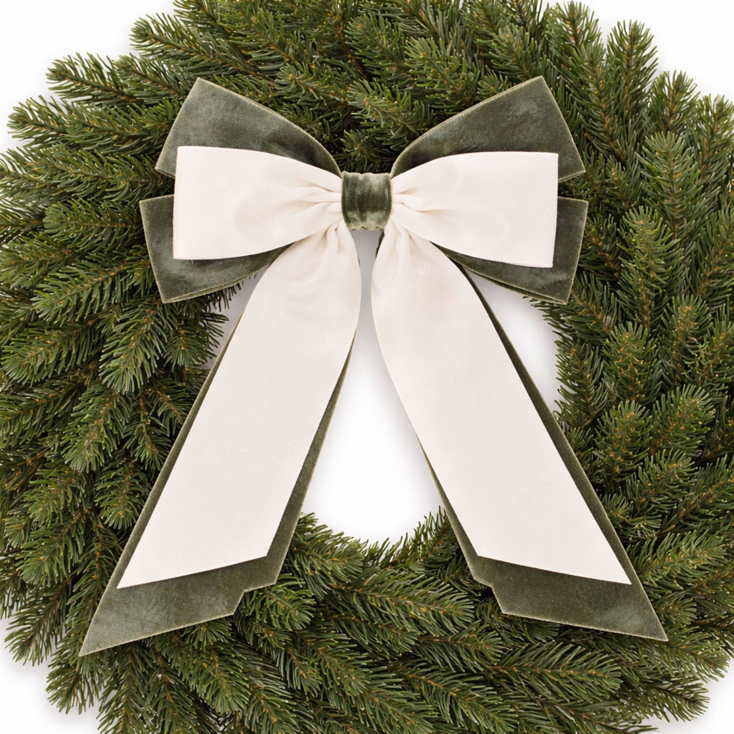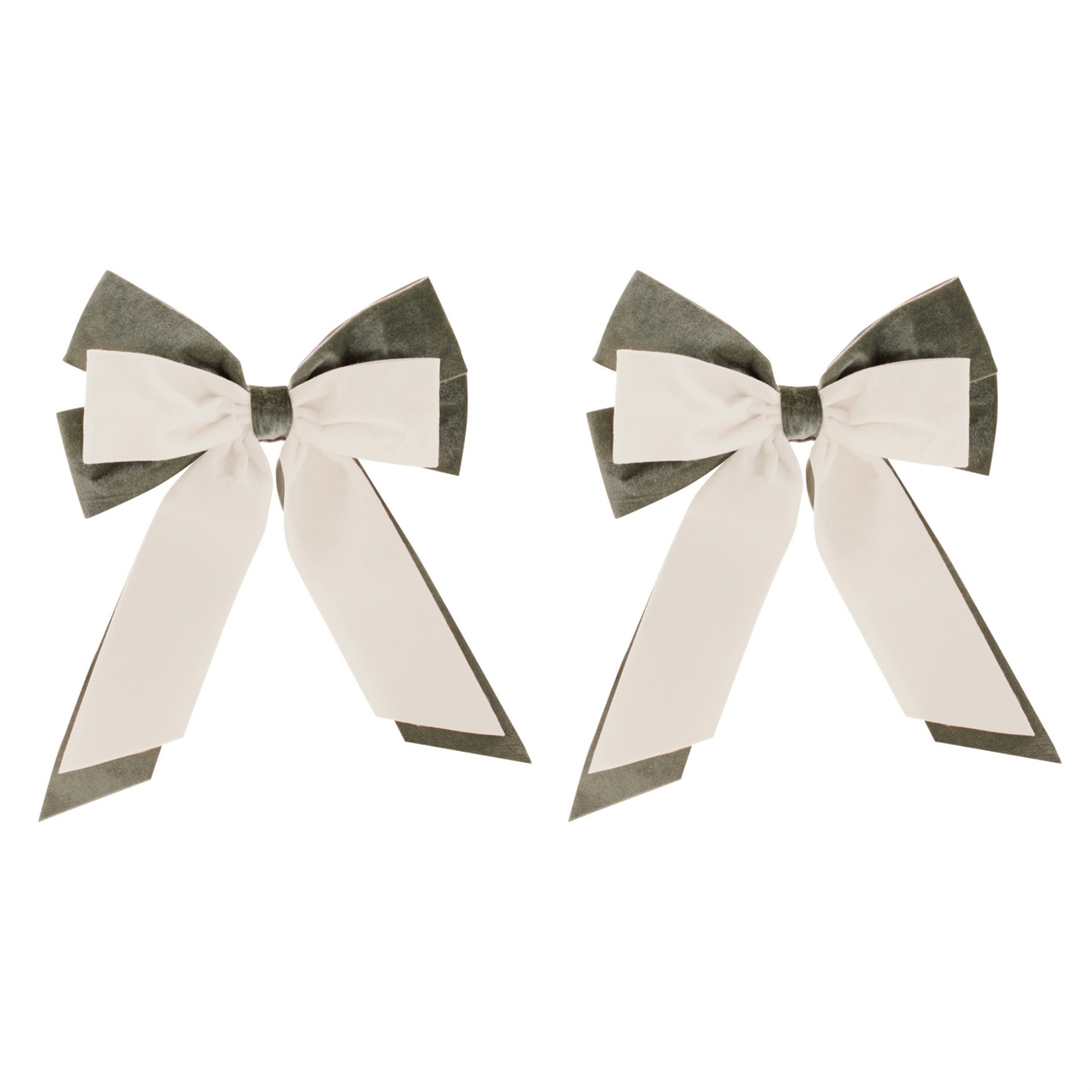 Classic, elegant, and full of holiday charm, this Bow Ornament Set is the perfect finishing touch for your Christmas d cor. Featuring layered sage green and white velvet fabric, these statement bows bring rich color and timeless style to trees, wreaths, garlands, and banisters. The soft texture and bold contrast create a traditional holiday look that pairs beautifully with farmhouse, vintage, or classic Christmas themes. Whether accenting your tree, decorating a front door wreath, or adding flair to wrapped gifts and mantel displays, these festive bows instantly elevate your seasonal styling.