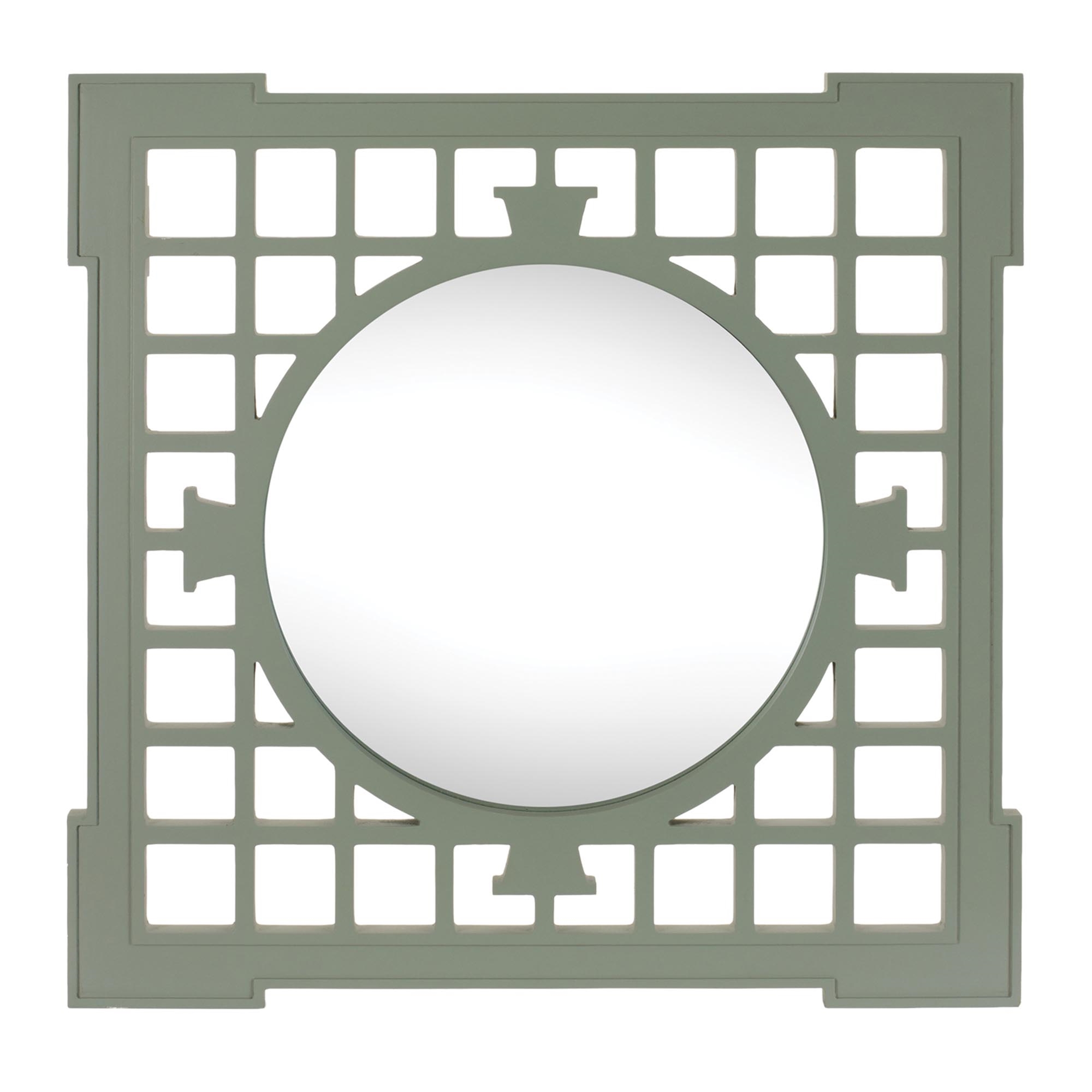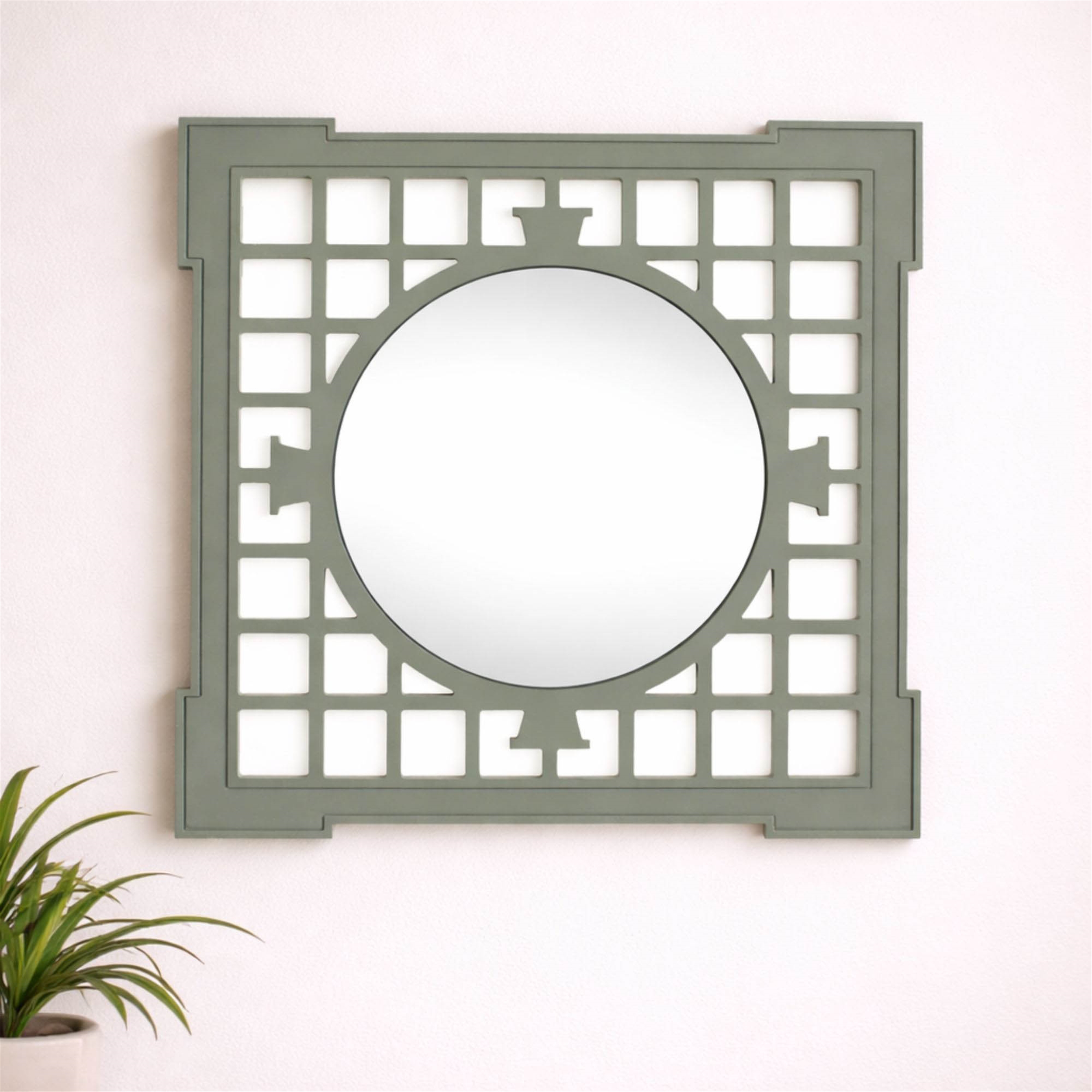 Add a fresh pop of style and light to your space with the Geometric Lattice Frame Wall Mirror. Featuring a chic square silhouette with a bold cutout grid design and a sleek round mirror center, this piece blends modern charm with a hint of classic architectural detail. Finished in a soft sage green tone, it s the perfect accent for entryways, bathrooms, bedrooms, or living rooms that could use a little extra brightness and dimension. Whether you re creating a statement wall or adding depth to a smaller space, this decorative wall mirror brings effortless elegance and contemporary flair to your home d cor.