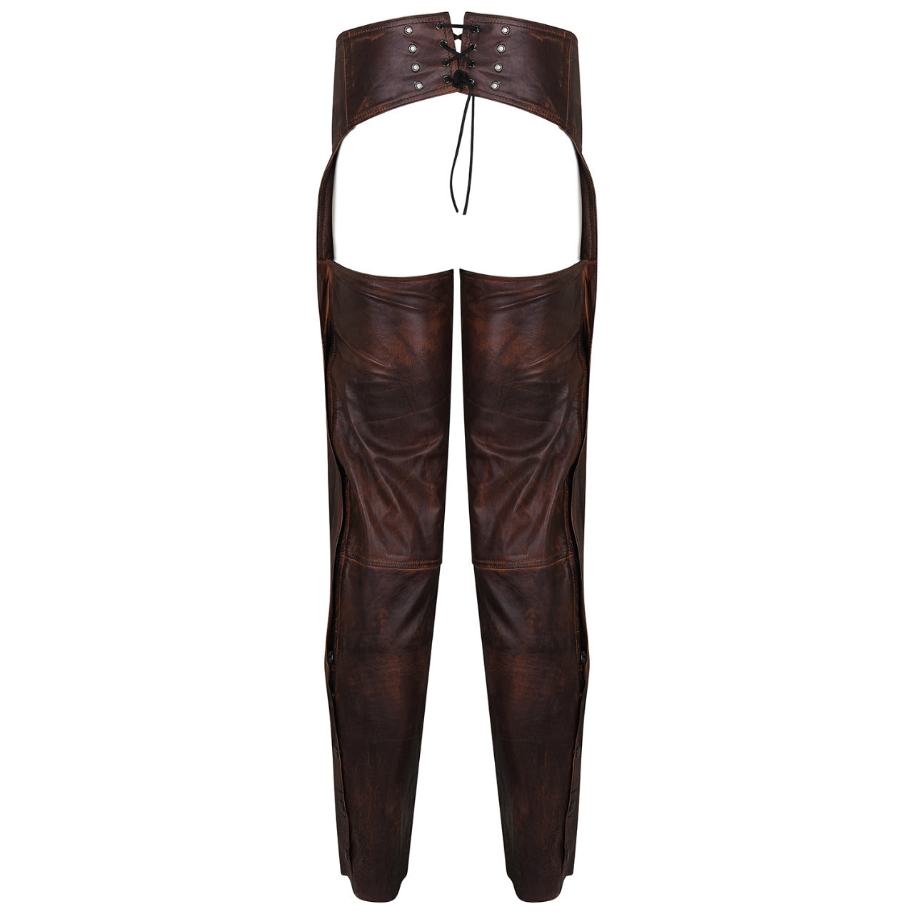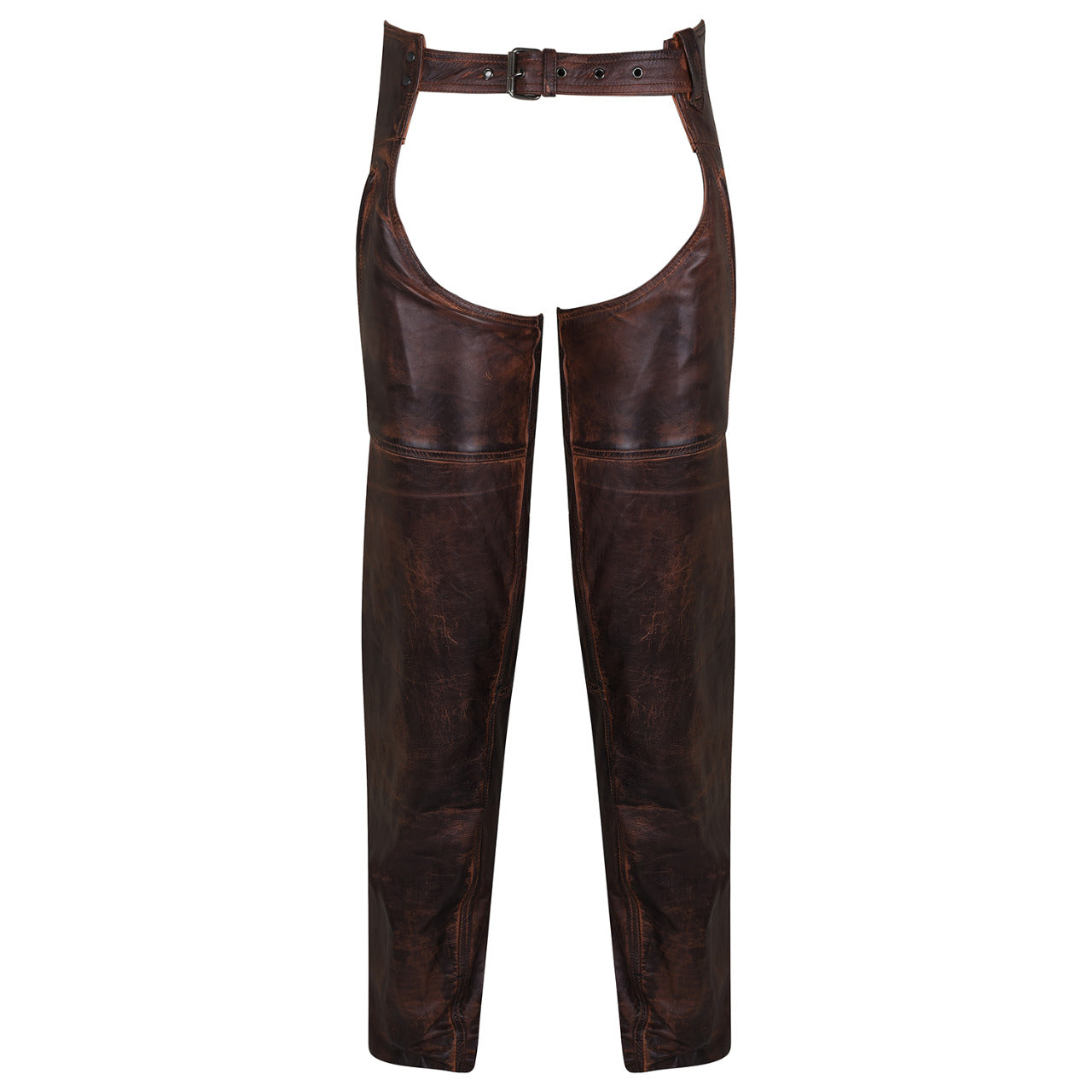 High Mileage Vintage Brown Leather Chaps lining are designed using a highly durable, premium quality leather. These high quality chaps are designed with quilted inside lining. Ride the open road with confidence sporting a pair of our exclusive leather chaps and show off your authentic biker style!