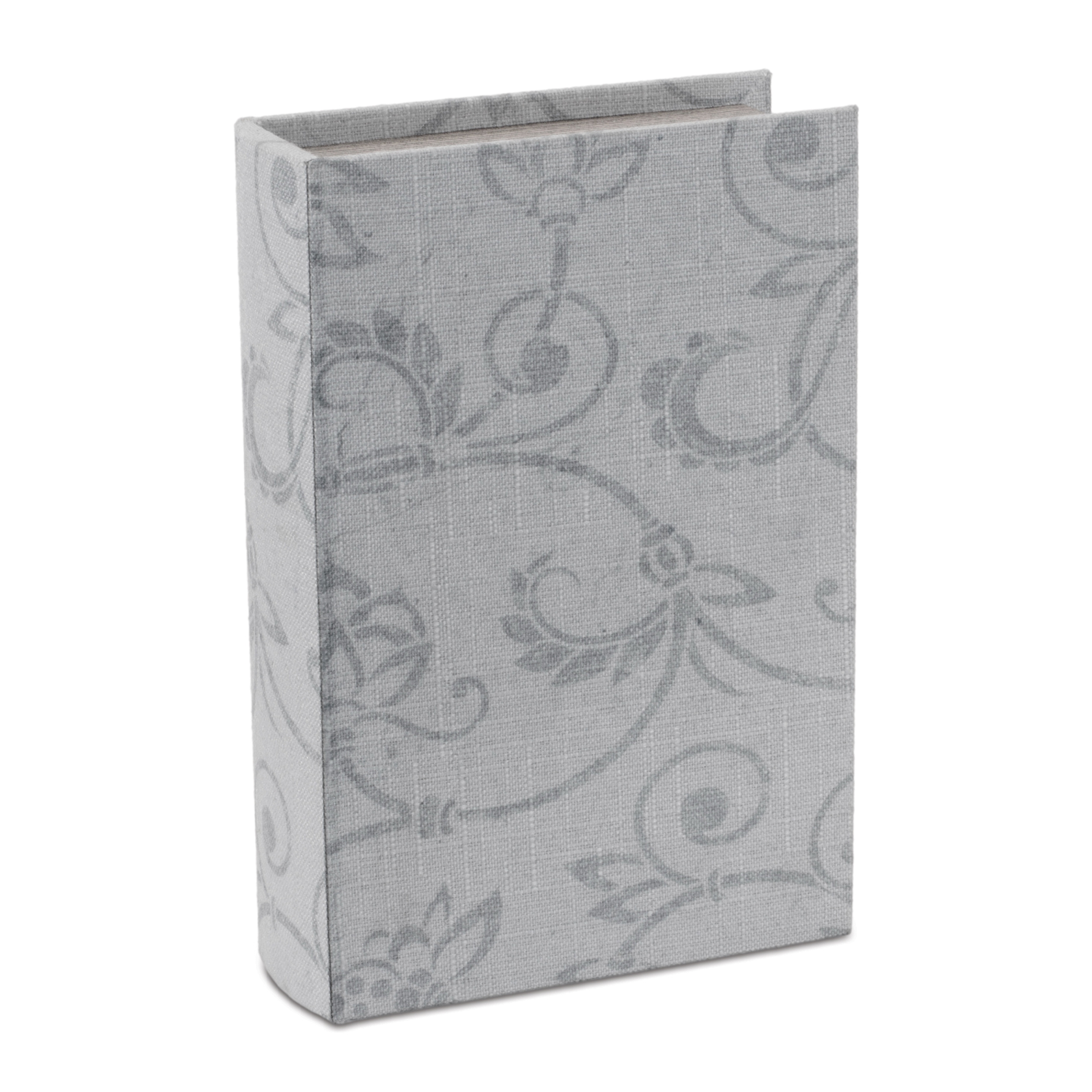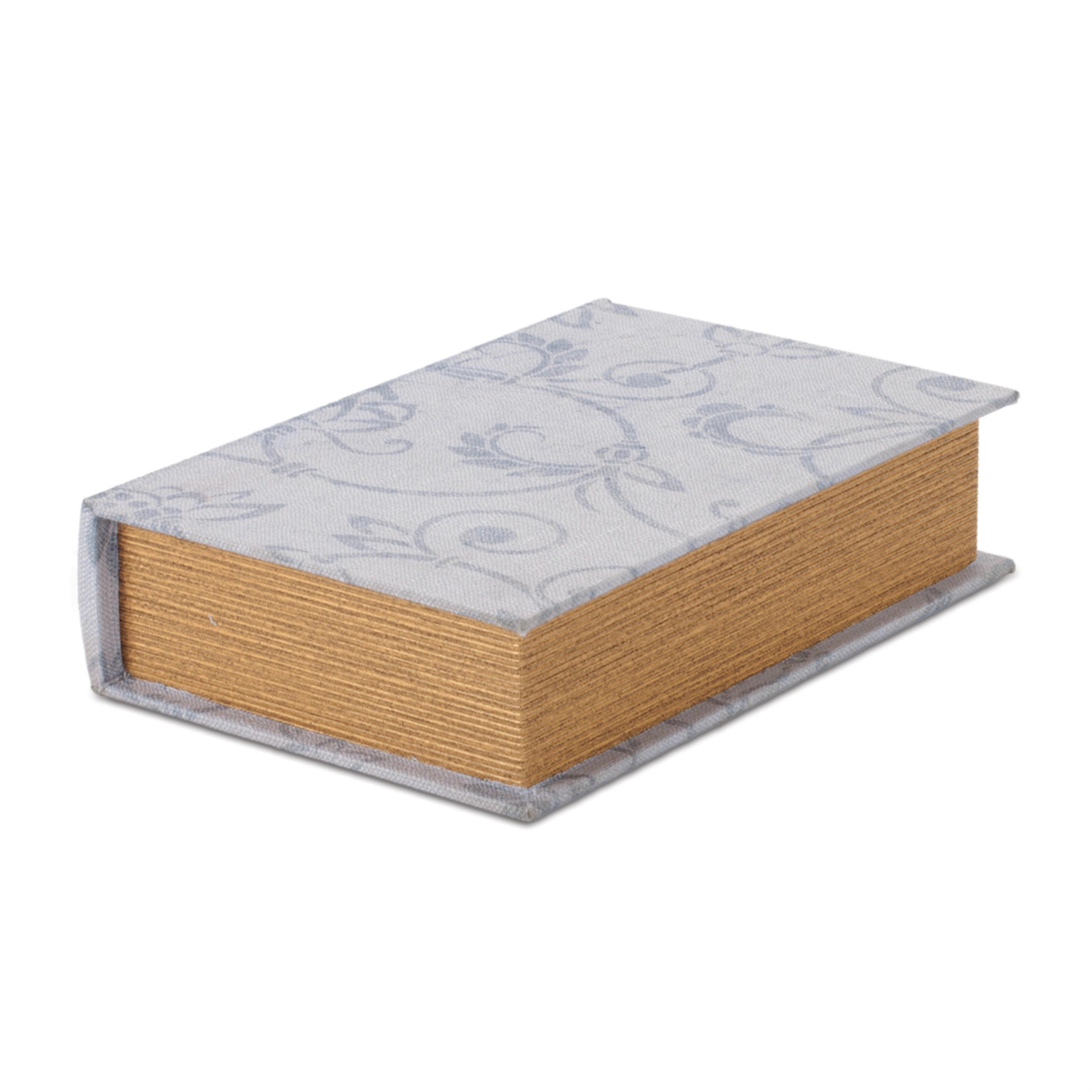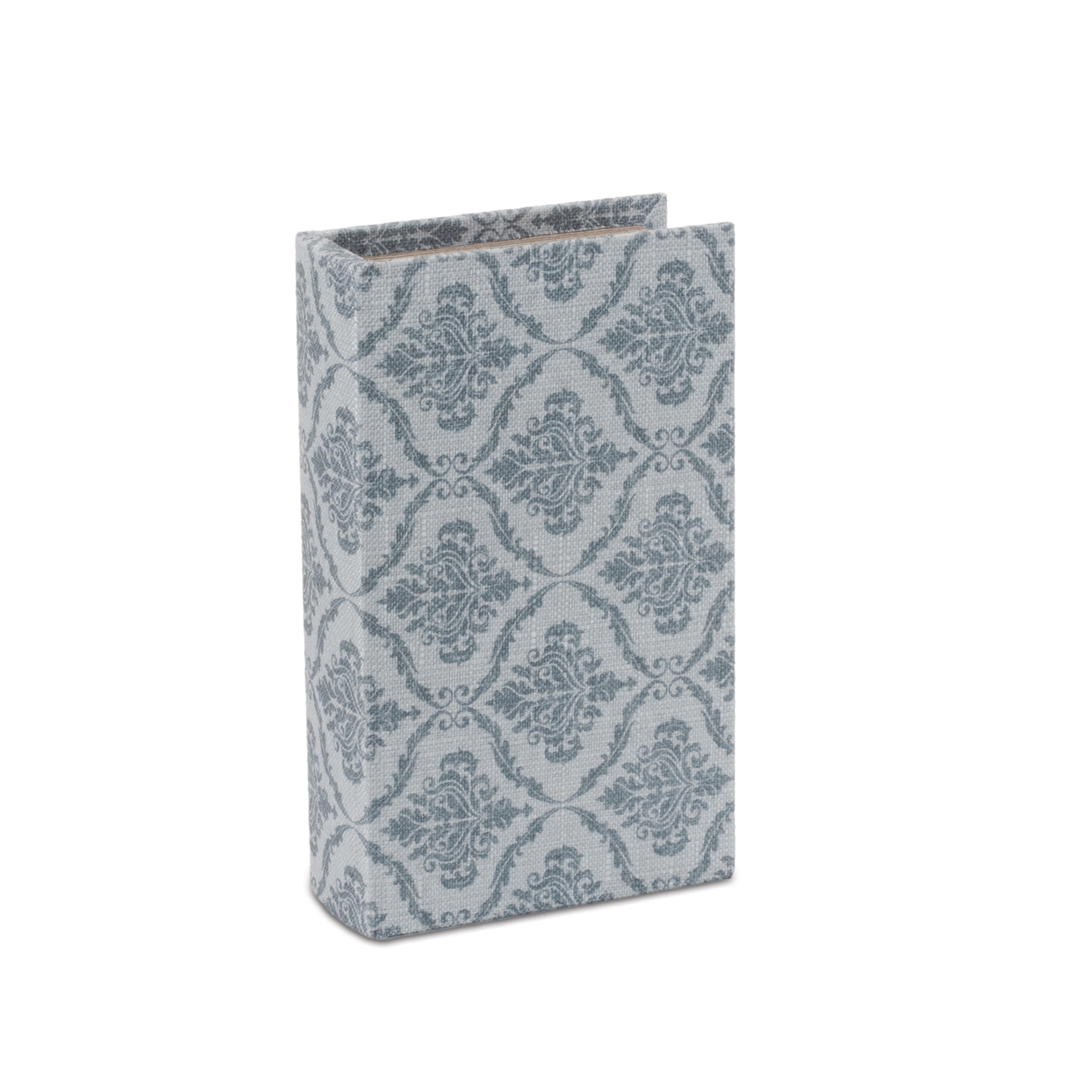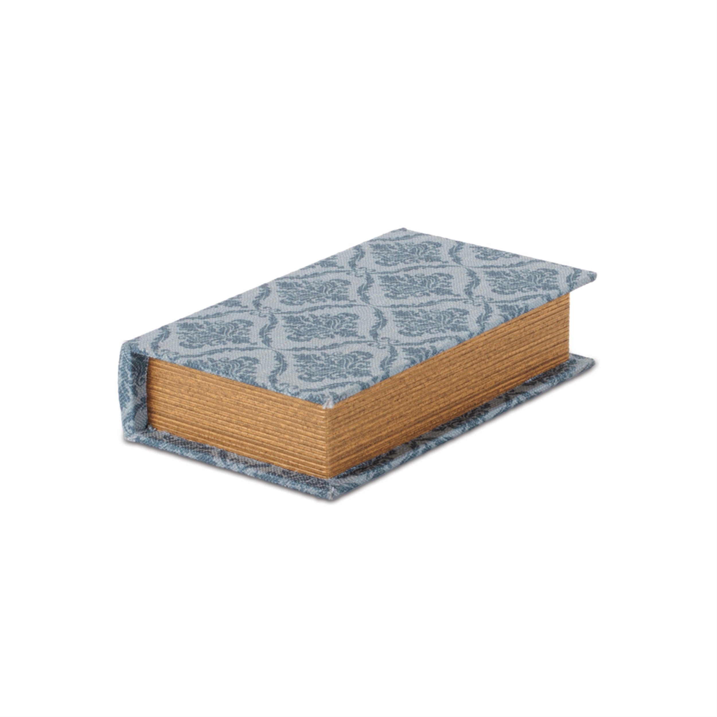 Hide your treasures in plain sight with this stylish Patterned Decorative Book Box set. Designed to look like classic hardcover books, these storage boxes feature soft blue fabric covers with elegant scroll and medallion-inspired patterns, along with realistic page detailing for an authentic touch. Perfect for storing remotes, keepsakes, jewelry, office supplies, or small accessories, they blend seamlessly into bookshelves, coffee tables, consoles, and home offices. Functional and decorative, this faux book storage set adds charm, organization, and a timeless layered look to any space.