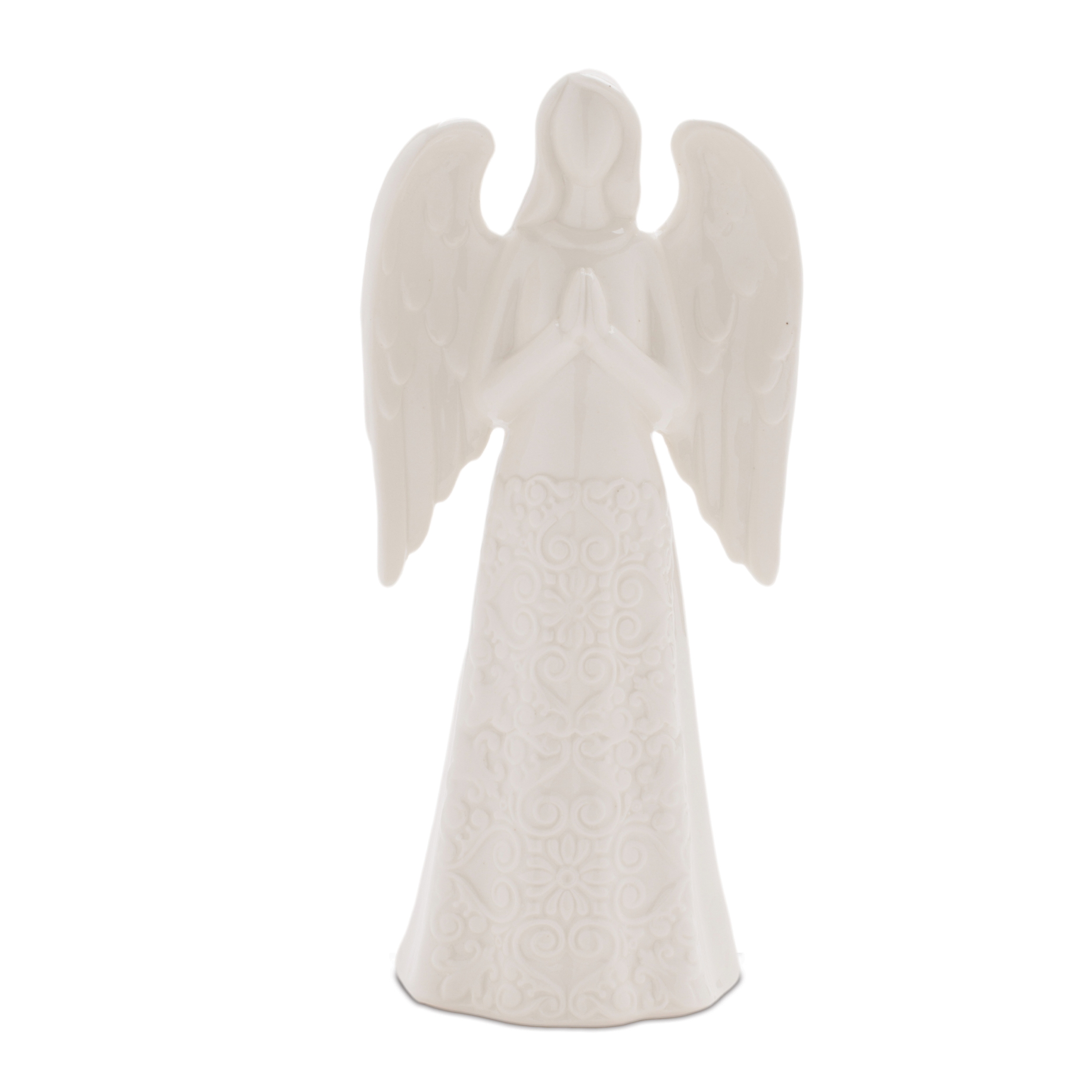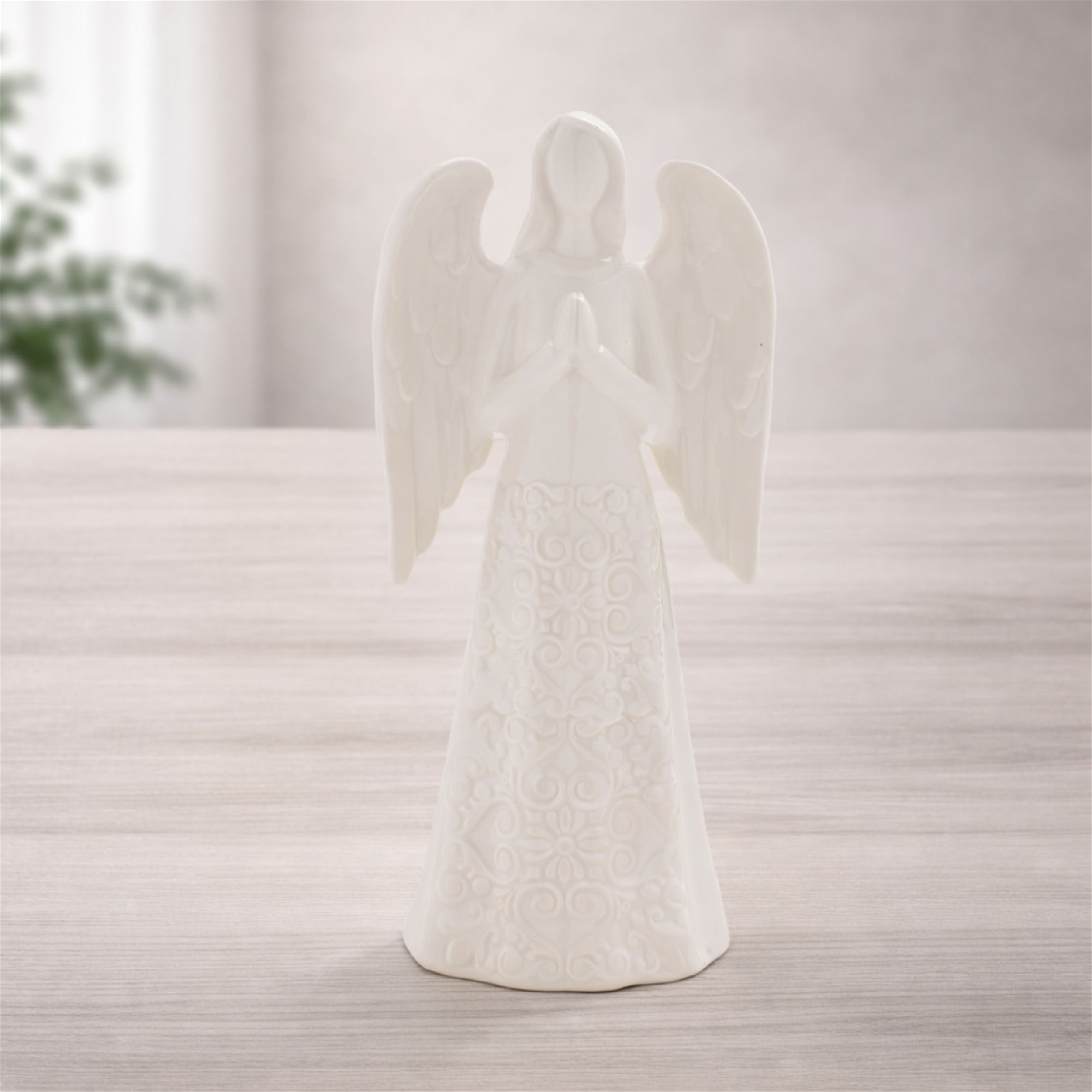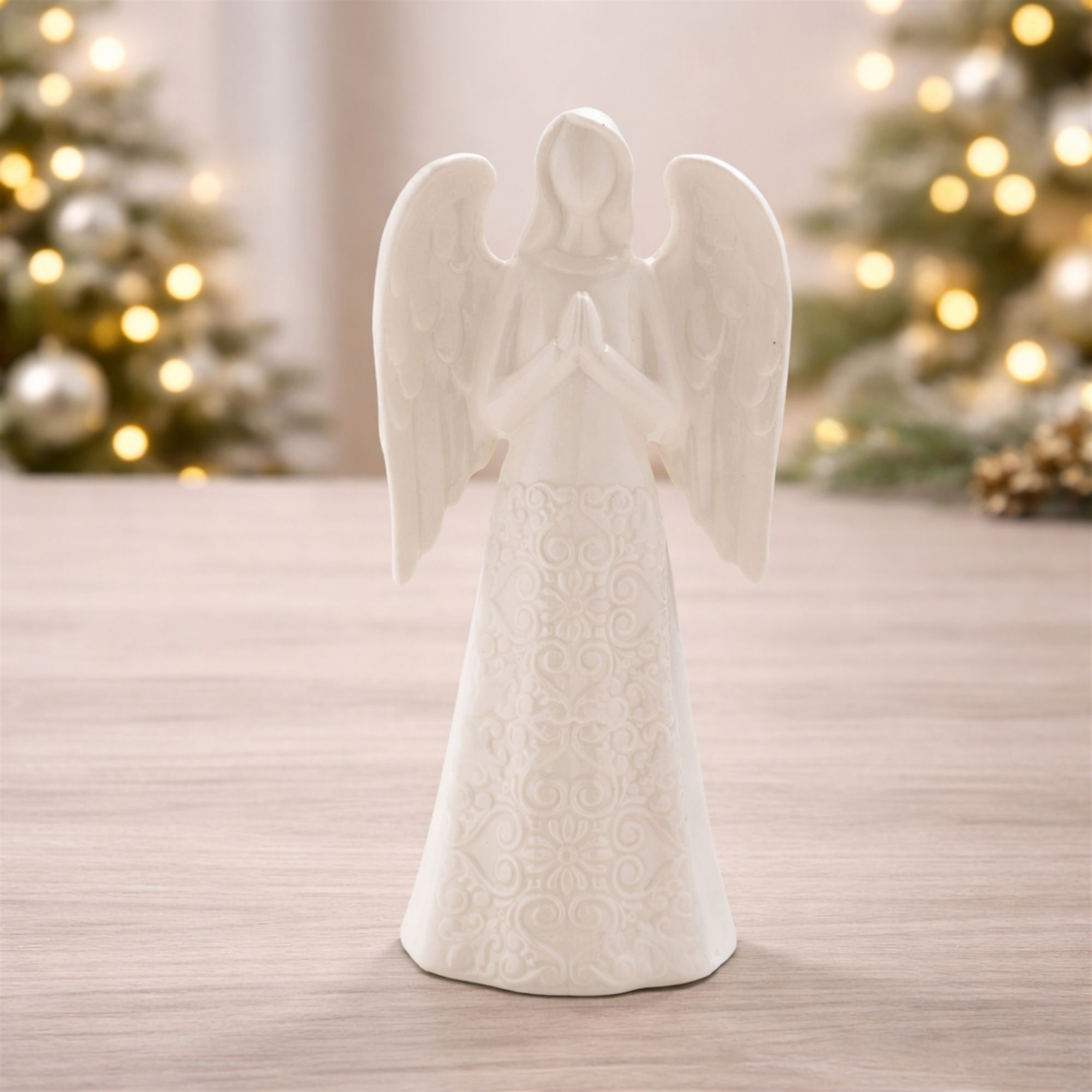 Add a touch of peace and grace to your holiday d cor with this White Praying Angel Ceramic Figurine. Featuring a serene silhouette with hands gently folded in prayer and beautifully sculpted wings, this elegant angel brings a calming presence to any space. The soft white finish and delicate embossed detailing create a timeless look that complements traditional Christmas d cor, winter displays, or year-round inspirational styling. Perfect for mantels, tabletops, bookshelves, memorial displays, or as a thoughtful gift, this ceramic angel serves as a meaningful symbol of faith, hope, and comfort throughout the season.