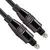 Toslink plugs on both ends of a 5mm plastic fiber cable. Black metal bodies on ends.