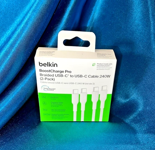 Belkin CAB025FQ2MWH2PK C - C CBL 240W 2.0 BRAIDED PCR 2M WHITE 2PK