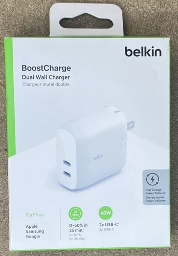 Belkin WCB006DQWH DUAL 20W USB-C WALL CHARGER PD 40W WHT 03 RETAIL BOX