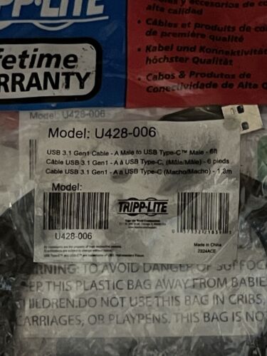 Eaton U428-C03-G2 3FT USB C TO USB-A CABLE 3.1 5 GBPS USB-IF CERT USB TYPE C M/M