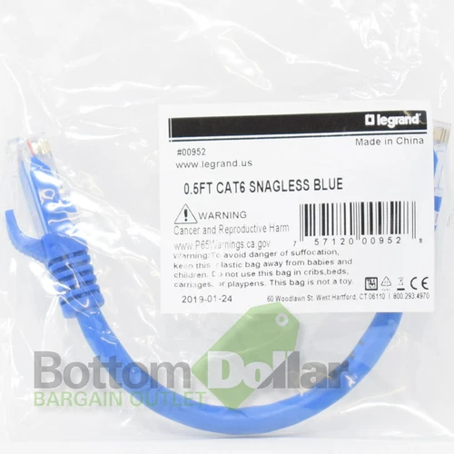 Legrand 00952 6IN CAT6 BLUE SNAGLESS UTP NTWK PATCH CABLE