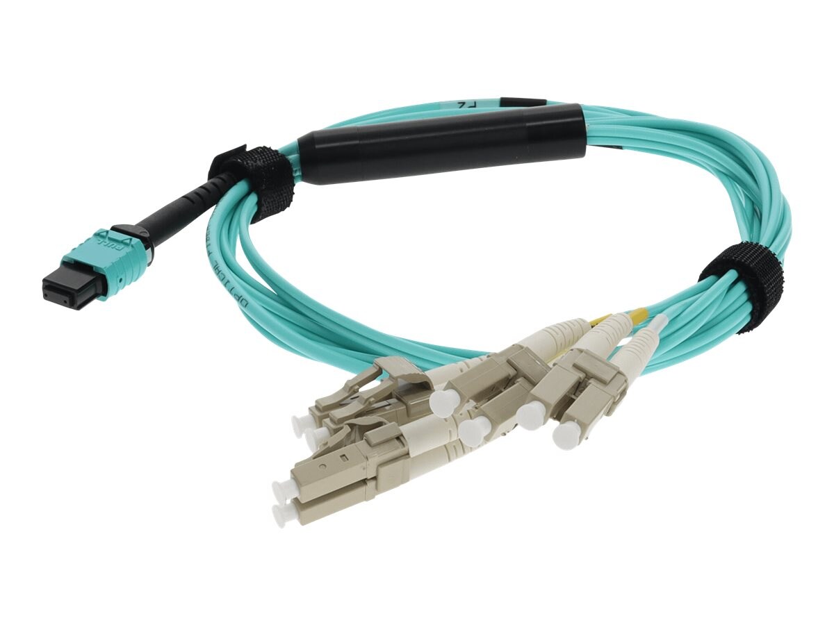 Addon ADD-MPO-4LC2M5OM3 ADDON 2M MPO/UPC TO 4XLC DUPLEX (8XLC)/UPC AQUA OM3 OFNR (RISER-RATED) 8-STRAND