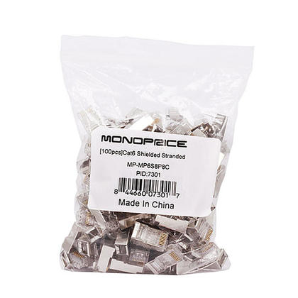 Monoprice 7301 8P8C RJ45 SHIELDED PLUG FOR STRANDED CAT6 ETHERNET CABLE, 100 PCS/PACK