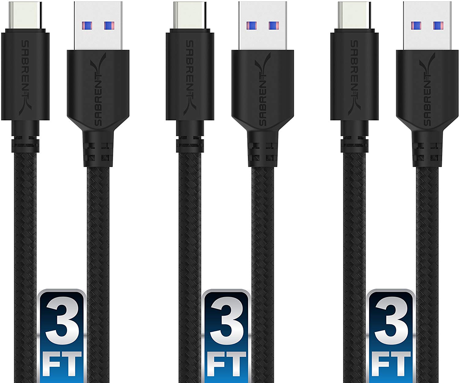 Sabrent CB-C3X3 3PK 22AWG PREMIUM 3FT USB-C TO USB A 3.0 SYNC & CHARGE CABLES
