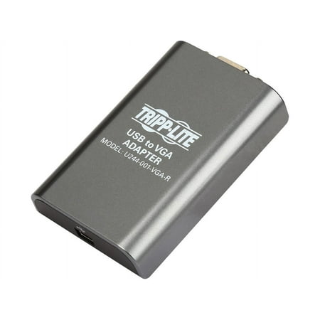 tripp lite's u244-001-vga-r, usb to vga display adapter, enables you to connect an additional monitor or projector to a computer/laptop usb 2.0 port. up to six u244-001-vga-r adapters can be used simultaneously, allowing the user to connect up to six additional monitors to a single computer. once the installation is done, the computer screen appears on the add-on monitor(s) without the hassle of function keys to swap to a second monitor. the u244-001-vga-r chip-set supports video resolutions up to 1920 x 1080 (60hz), 1080p (60hz). the u244-001-vga-r is compatible with windows 2000 and later, and mac os x 10.4 and later operating systems. 1 year limited warranty.