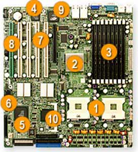 Supermicro X6DH8-XG2 MotherboardDual 604 Socket for Intel 64-bit Xeon, Intel E7520, 8 DIMM, 1 PCI Express, 5 PCI-X, SATA, IDE, USB, Video, LAN Support. |