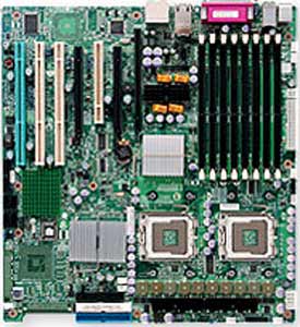 Dual 771-pin LGA Sockets, Supports up to two Intel ® 64-bit Xeon ® processor(s), Intel ® 5000X (GreenCreek) chipset, 1 PCI-E (16x), 1 (x4) PCI-et, 2x 64-bit 133MHz PCI-X, 1x 64-bit 100MHz PCI-X, 1x 32-bit 33MHz PCI, DDR2 DIMM Up to 32 GB, Dual LAN, USB, IDE, SATA, Audio, Extended ATX Form Factor |