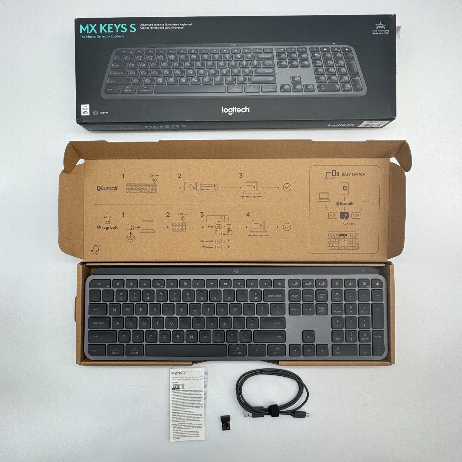 Logitech 920-011558 LOGITECH MX KEYS S WIRELESS KEYBOARD GRAPHITE LOW PROFILE