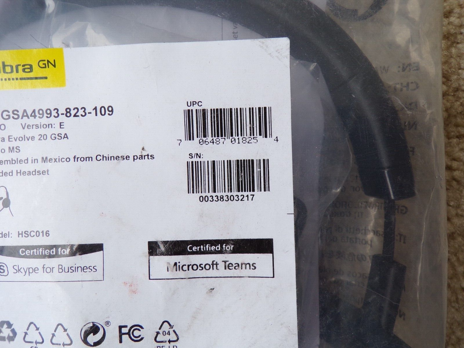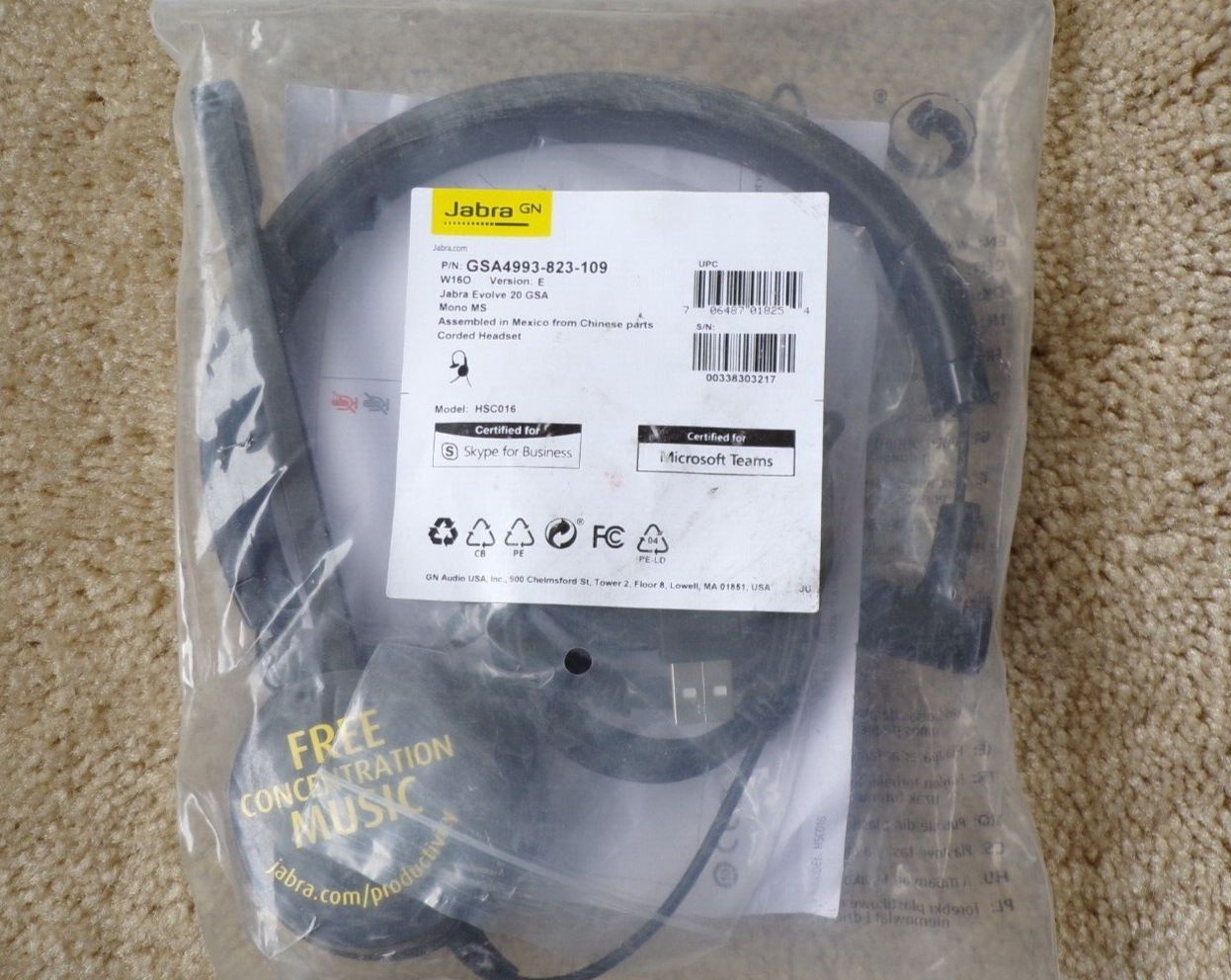 Jabra GSA4993-823-109 JABRA EVOLVE 20 MS MONO GSA