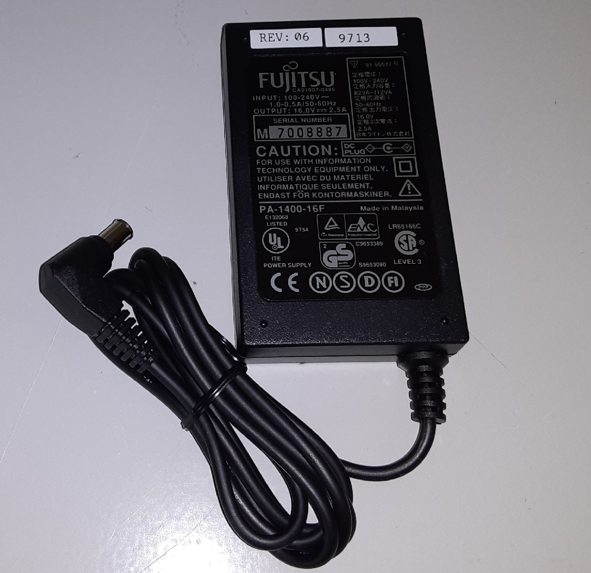Fujitsu 9713 Rev: 06 AC Adapter,CA01007-0480  PA-1400-16F 16.0Vdc 2.5A  Barrel con