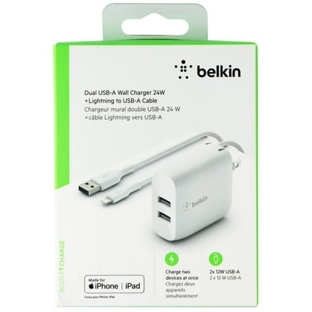 Belkin WCD001DQ1MWH BOOST CHARGE DUAL USB-A WALL CHARGER 24W + LIGHTNING-USB-A CABLE