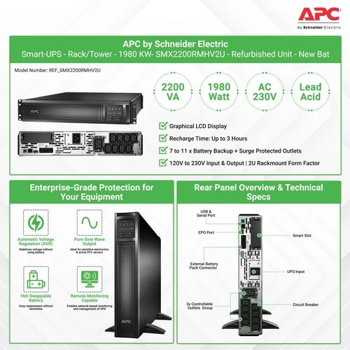 APC SMX2200RMHV2U SMART-UPS X 2200VA RACK/TOWER LCD 200-240V